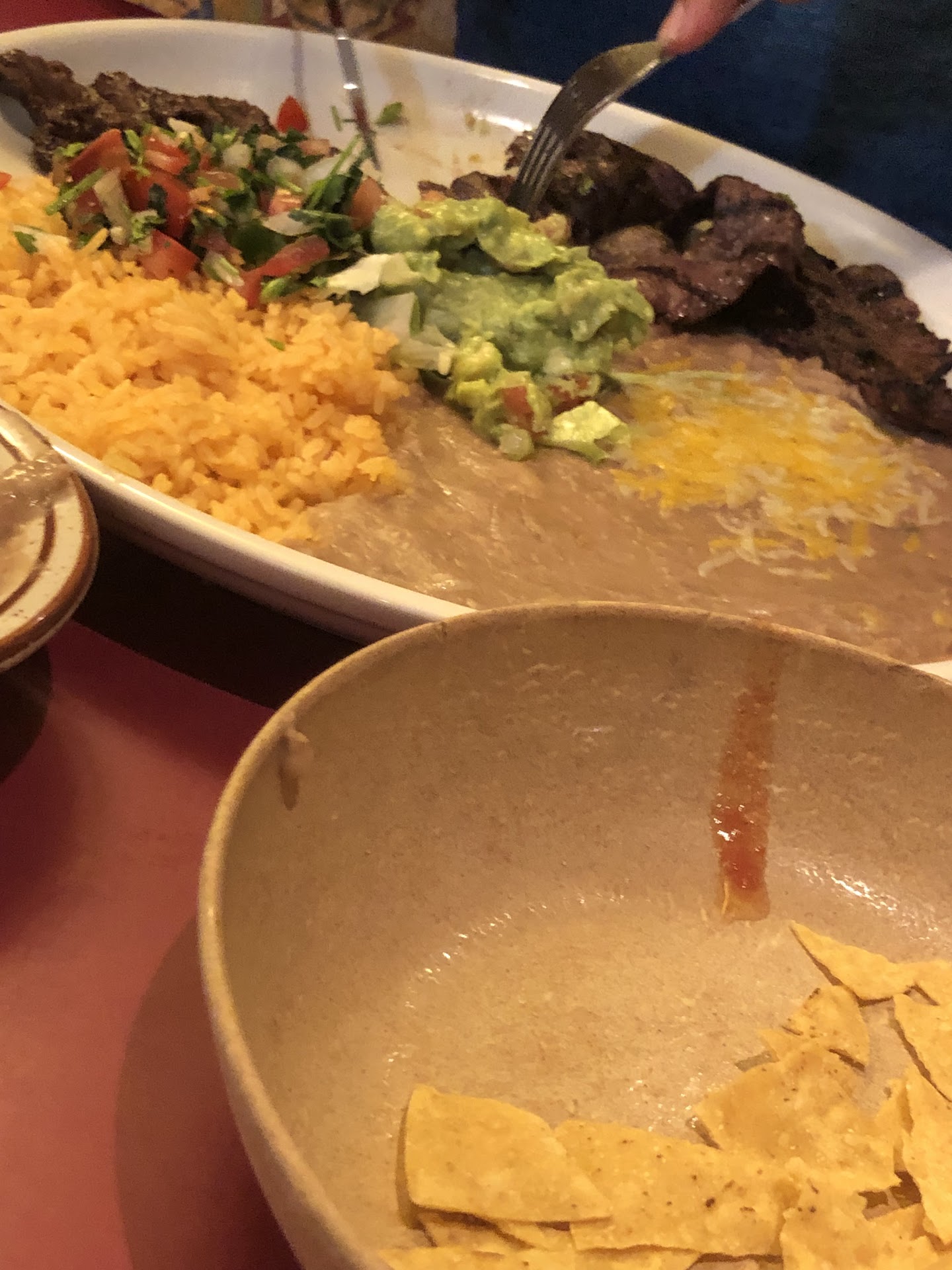 I had the #10 combo, Enchilada, tamales. Chimichanga. Son had a quesadilla, and wife had a burrito. Everything tasted good, just not great. The flavor profile was right⌠just mild. The refried beans were thin and runny, but Iâve seen some places do this, so it might have been intentional. I thought to myself, good place to take someone getting introduced to Mexican. One flavor they werenât shy on was cilantro, so if you are of the group that thinks itâs soap⌠be aware. Almost forgot, the salsa was amazing. Thick, chunky, tasty, and stayed on the chip.