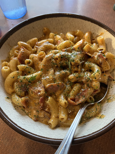 When we walked in, the restaurant is split in 2. One side was closed off, chairs still on the tables. The other (bar) half, mostly full, and just had a vibe of "every customer looking miserable", like they all too were waiting (a long time) for food.
