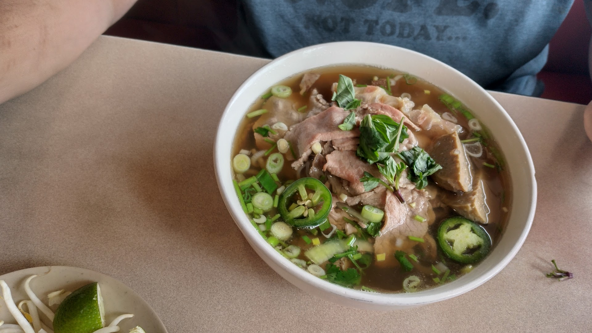 If I could give more than five stars, I would. I travel for work, and I eat a lot of pho. What I put into my mouth today -it was so amazing I couldnโt help but tell the staff how impressed I was with the quality of their food. Being a marketer I donโt hesitate to speak my mind positive or negative but there is always a way to do so with kindness and tact. When something is good I will let it be known and when something is bad we definitely take the time to write up a review, and in reading some of the negative comments that have been posted recently regarding this restaurant I can only say number one you wonโt find pineapple in Pho. Number two - if you have a shell fish or seafood allergy, you should not be eating Vietnamese or Thai food as fish sauce (not to be confused w shellfish) is almost always an ingredient in almost every dish and quite frankly you are the problem not the restaurant - do your homework. Some of the other negative reviews, in summary, translate to that individual being an impatient person. When you go to a Vietnamese Thai or Chinese restaurant, or any other ethnicity for that matter thereโs almost always an accent of that individualโs native culture, or speech pattern in any particular staff member. Be patient, slow down and above all make an effort to listen, you will find that everyone here is quite attentive and willing to please. This is their livelihood for certainty and they surely will strive to give you their best, whether service or food. Spend local, shop local, and this location is family owned and operated and I fully support that. Every single time I return to Bend I will be a patron. You had me at my first sip. *try and guess the amazing and stand out ingredient within the house made hot chili oil, then tell the staff what you think it is. Happy mouth, happy tummy, great dining, enjoy! Youโre welcome, yesโฆ YOU - the reader of this review. And P.S. to the owners, do not be afraid to tactfully respond to your reviews. You got this (wink) you have...