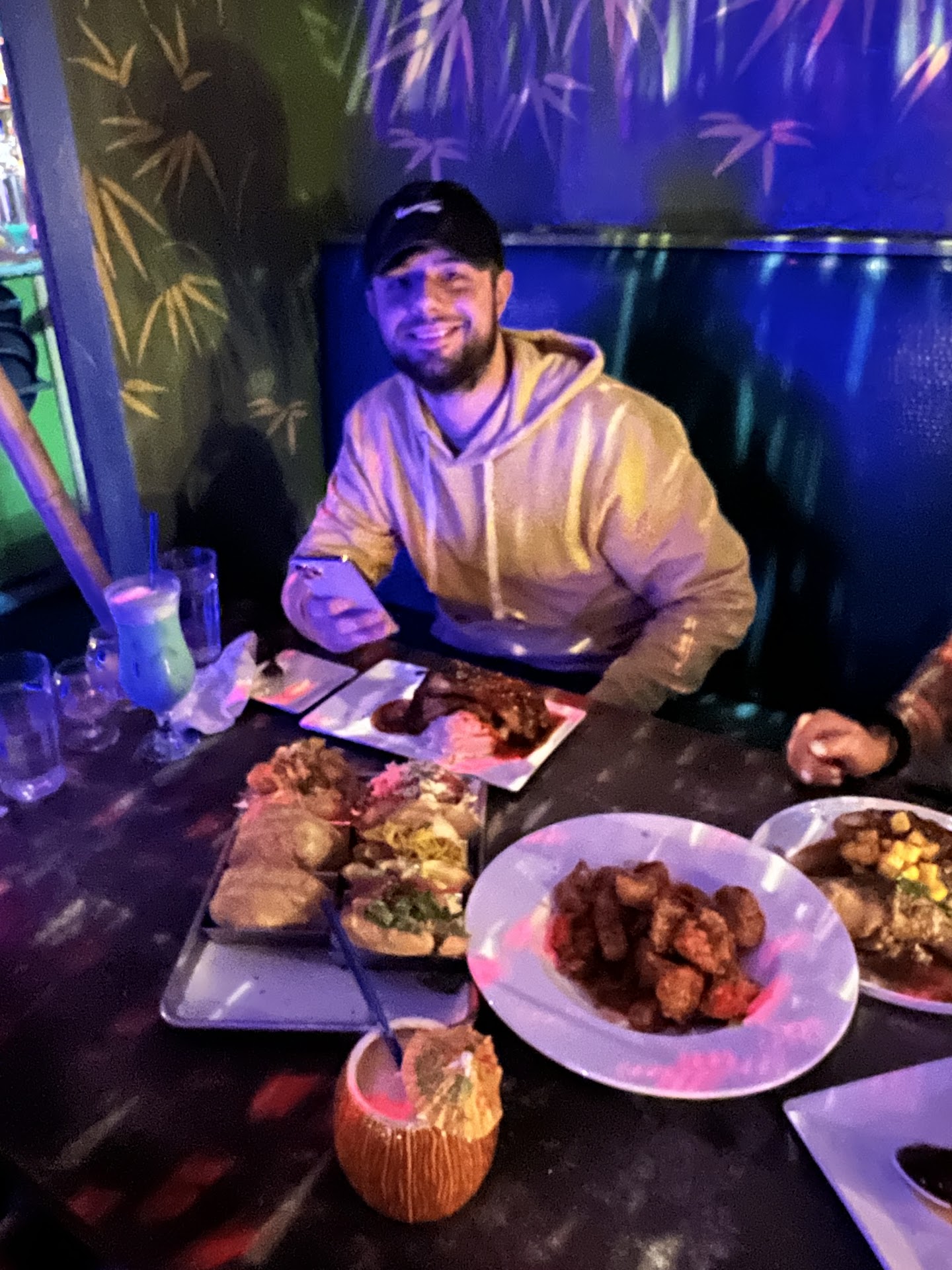 This is not the quiet, romantic tiki bar that took the US by storm in the late 50s and early 60s. It is energetic, even boisterous, with loud music heavy in the bass lines. We sat close to a speaker and had difficulty hearing each other.