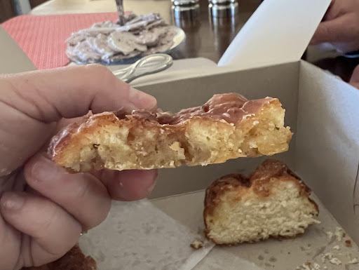 *Home. Upon opening the familiar pink box, the fluffy wonderful apple fritter we come to love, was flat, dense and didnāt taste sweet and buttery like the ones weād fallen in food love with . :( *Sliced into our favorite buttermilk bars to share with the whole family as we often do, and they were not buttermilkāy at all. Normally they were beautiful on the slice and we could see the drips down and taste the rich decadent buttermilk, but these were smaller, no drips, didnāt taste of buttermilk at all. š¢ more like a cake donut. š I wonāt go on and on anymore because weāve loved this place for as long as I can remember, and I do realize I sound like a child who loves her cake (Iām a chubby middle aged woman who does adore her special treats) *Not sure if the shop sold to someone else, or they changed recipes, but we wonāt be driving all the way from across town to our favorite any longer. At this point weāll just drive to Sisters and get that shops treats Iām sad to say. Come back our...