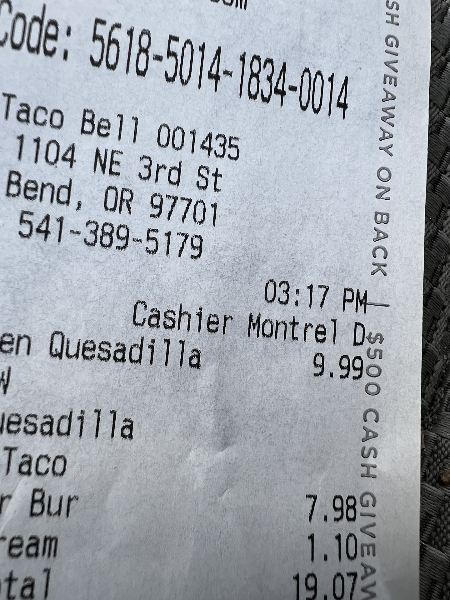 I drove through the drive through at 3:10pm on 8/14/2024, like I’ve done a couple random times when I’m in Bend working. I ordered the #7 meal, with a large soda, and a soft taco instead of crunchy one. The person taking my order seemed like he might have been in a mood or something, by the way he asked if that was all. I said no, I’d love to add 2 of the Beefy 5 Layer Burritos with no sour cream please. The guy then said oh in an off putting way. I said that’s all, and he asked if I wanted any sause, I said mild please, and he said oh well how about you just remind me when you get to the window. I wait patently to get to the 1st window to pay, and then receive my order. Nothing off then, got my food and then went and parked in their parking lot to eat my meal. I took out one of the 5 layer beefy burritos and took my first bite, to realize the nasty taste of sour cream inside.