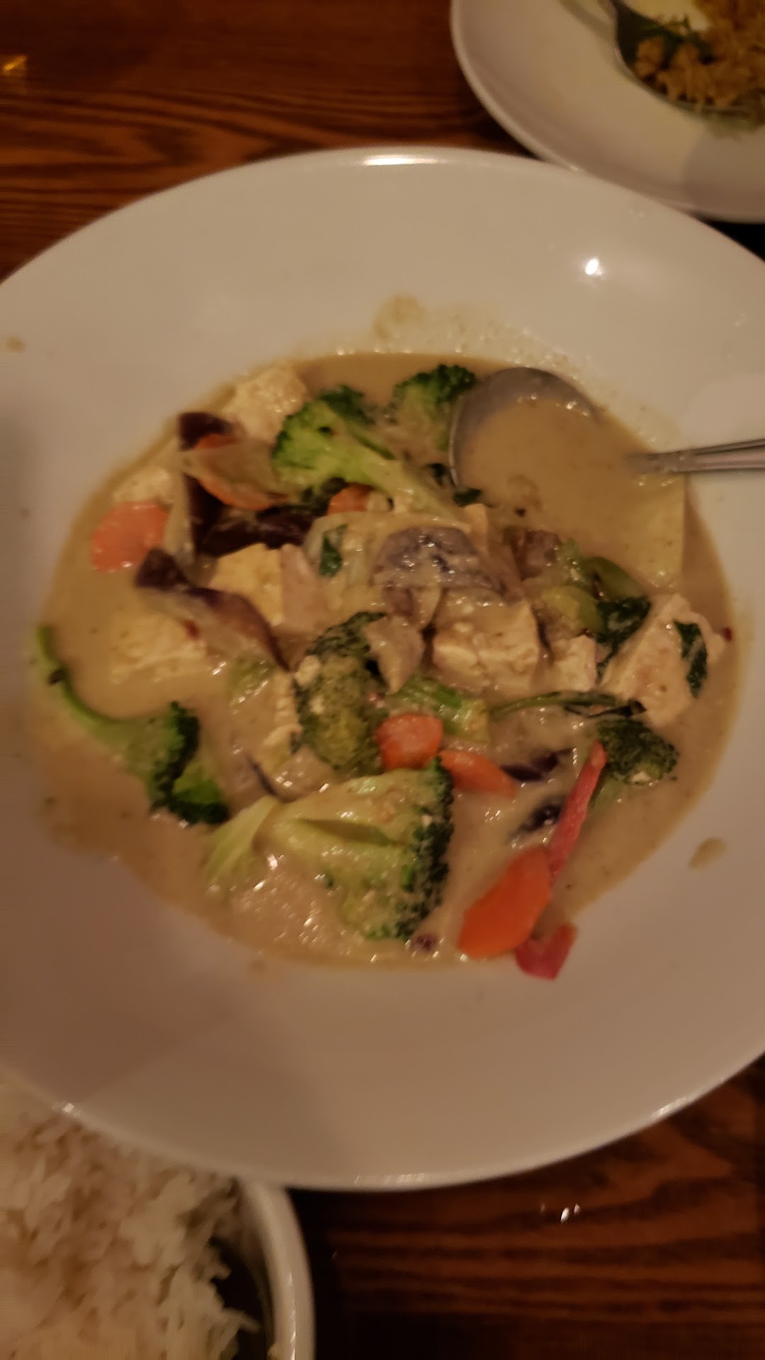 Our third attempt we ordered takeout, we went in, she promptly placed the food on the counter with the receipt and proceeded to turn away, take out her phone and look through it. This time we got the red curry again and the roast duck! The duck was particularly dry and didn't taste very...