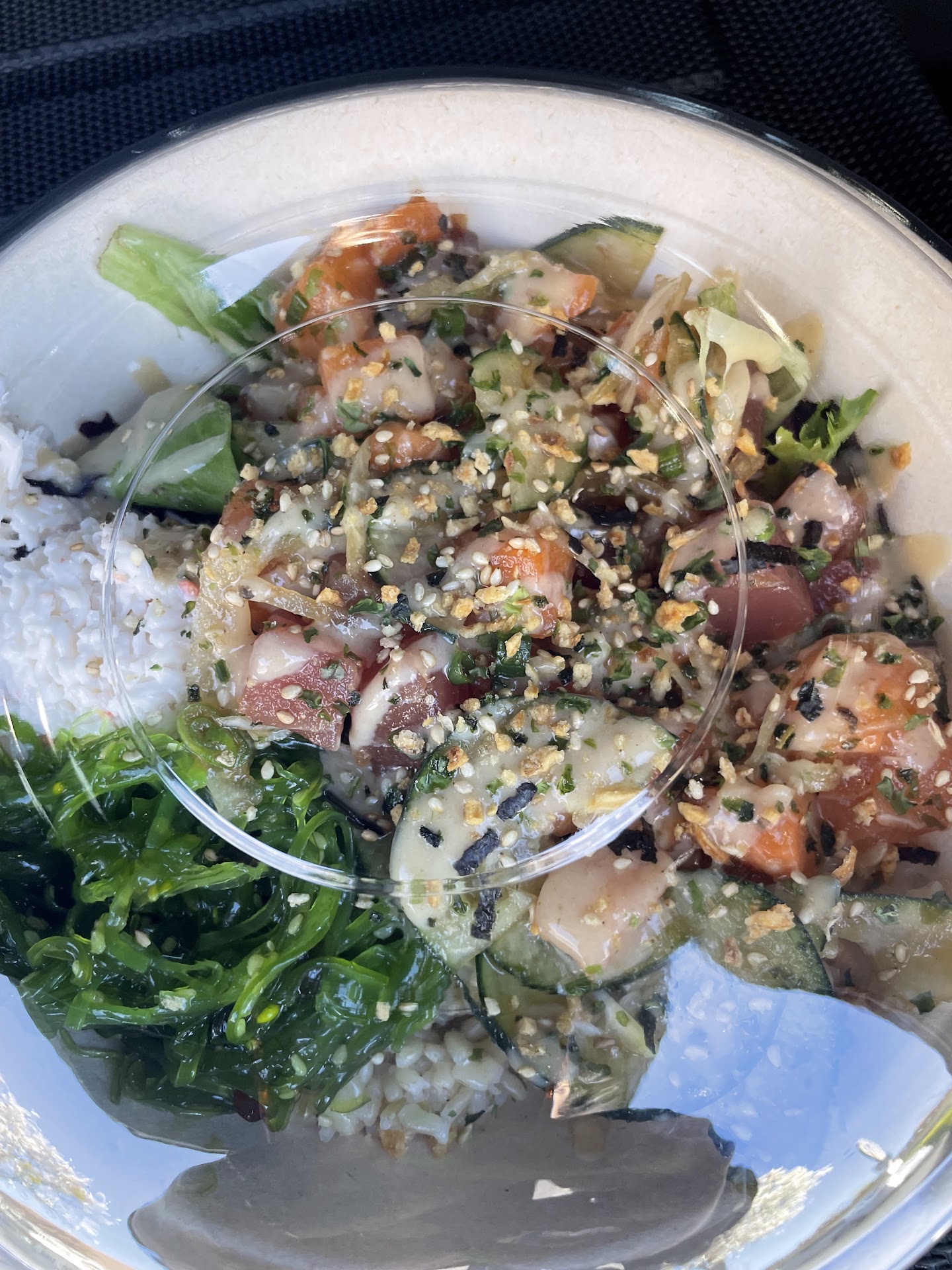 Read moreI can’t believe it’s taken me forever to try this Poke spot in Benicia. I’ve been getting my nails done next door for years, located in the same plaza as Nations, it can get pretty busy but there’s always parking. Small store front but very welcoming and cozy. The workers are super inviting, friendly, and helpful. You have plenty of options to choose for. I opted for the signature house bowl which comes with tuna, salmon, seaweed salad, crab salad, cucumber, green onion, house sauce. I chose half brown rice and vegetables/greens for my base. The worker also helped elevate my bowl with some ponzu sauce, sesame seeds, and garlic flakes. I devoured my bowl so quickly! There isn’t any seating indoors, but there’s a fro yo spot a couple of doors down with outdoor seating , maybe get something for dessert if you want to eat it outside quickly or there’s a park across the street. If you’re craving for Poke while in Benicia, this...
