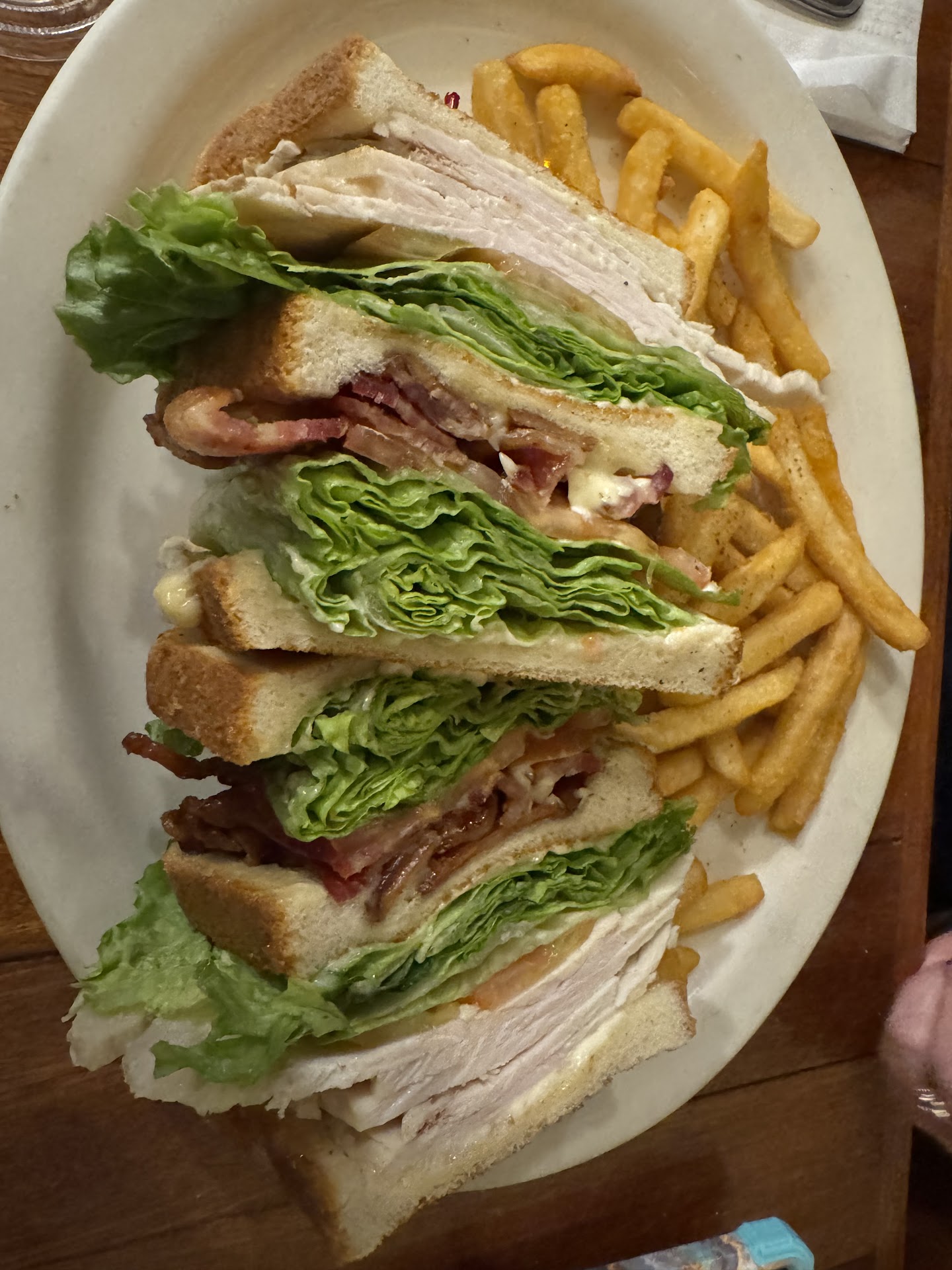 Next the club, although this wasn’t my meal, I can already say I’d put it against any club in the area...first off it’s a beast of a sandwich, the picture doesn’t do justice. It made my half pound burger look small. Properly made with 3 slices of bread, mayo on each slice, bacon, lettuce and tomato on bottom half and turkey with lettuce on top half. Now, again this is about simplicity and great product selection. The bread wasn’t overly thick, but also wasn’t too thin. It was lightly toasted so it didn’t crumble as you tried to bite through it. The biggest compliment was my mom saying “This is really good turkey.” I’m not saying she’s a picky eater, but let’s say she knows what she likes. Again, her regular fries were hot and crispy.