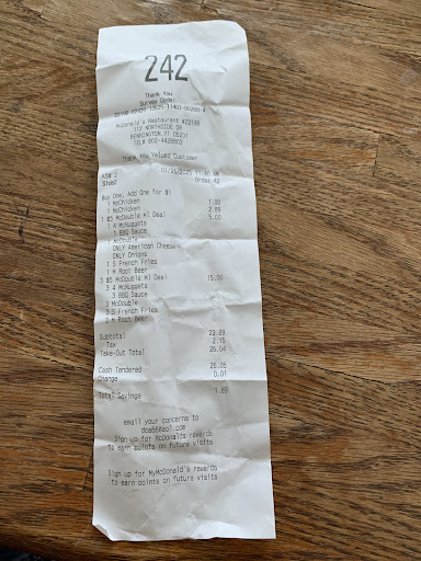 Today I made a purchase of 4 Value Meals. I waited but not too long, I received my food portion of my order and NO Drinks. I waited a few minutes longer and finally asked the girl at the counter politely where my drinks were? She told me that she did not take my order and that I needed to show my receipt. She was standing at the counter while I placed my order. I showed my receipt; was given a hard time as they now had to pour 4 drinks. I asked for two of them to be with no ice and the girl snapped back at me that they could only do that with Manger approval. Being now irritated I requested to speak to the Manager. She came forward. I explained why I was unhappy. Requested two drinks with no ice, and she refused. The girl at the counter stated that she had not taken my order. She was partially correct. The girl she replaced was taken from the counter mid-order and sent to another job. The manager asked what drinks I had ordered rather than looking at my receipt as they seem very anal about; and as she was filling the drink order the original counter person told her that I had ordered Root beers for the order. I give this a 1 star at Best! Complete lack of cooperation, coordination, and Team leadership. Rude personnel and the Manager did nothing to honor my very simple request of no ice in two drinks. Way to treat costumers after you folks make a mistake! I will tell all of my enemies as I will not recommend them to my friends! My Order was #242. Check out the pic. I...