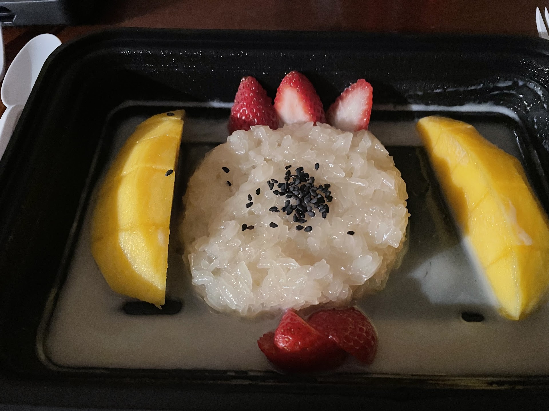 Throughout the evening, Nikki provided classic white glove service, serving from the left and removing from the right, unobtrusively refilling water glasses, replacing a dropped napkin, and being attentive but not overly solicitous. Her warm greeting and introduction when we arrived made us feel like we were at a meal with friends, and the dinner, served family style, meant we could ask for seconds if we wished (the serving sizes were perfect and satisfying). We were, in fact, too full to choose one of the two fruit-forward desserts, and told Chef and Nikki we would return just to get dessert the next evening. The Chef asked us to pick one, and packed Mango Sticky Rice to go. We ate it about two hours later, and it was, again, perfectly balanced: sweet/sour, soft/firm, and likely, hot pudding/fruit when served. At room temperature, it was absolutely wonderful. The entire meal was gluten and dairy-free, and the presentations were fresh, simple, colorful, and attractive.