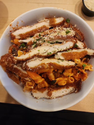 The pasta I recommend is from the build your own, with the white sauce and the rib meat. It's a very filling meal. I could not finish mine when I went. They are known for their chicken parmigiana which is huge. They flatten the chicken, so for me it's a bit dry, but many of my friends choose that as their go to. It is very nice and crisp. I recommend doing that with their pesto pasta on the side.