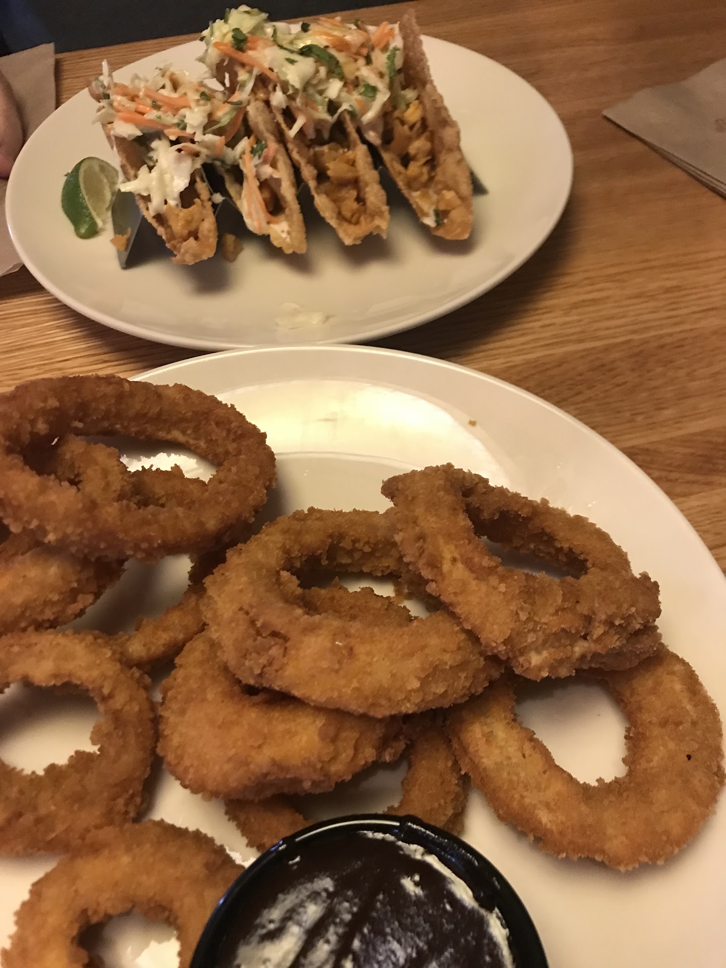 I'm only giving the 3 stars because my experience this weekend was a complete fail. Food was delious came out pretty quick. Wait time was rather fast we were told 20 minutes and headed to the bar to grab some drinks prior to being seated. Which was probably only 10 minutes but from there was just kinda off. I won't say our server was terrible but she wasn't friendly. She seemed annoyed with every request, from a box to a soda to the check. Which the check was wrong which I didn't through I fit just asked why and she fixed it. I try to be understanding from being in the business but dirty app plates on the table our entire meal and again the awkward attitude that made us feel like we were inconveniencing her. But that isn't where my complaint is your employees are flat out unprofessional. Going to the bathroom the access was literally blocked by what seemed like every staff member in the place. Talking ABOUT CUSTOMERS laughing and not understanding the words excuse me so I could actually get to the restroom. Then the restrooms were beyond gross. Dirty, urine of the toilet, paper towels all over the place which is at fault by the customer but it should be kept up with. I left without even using the bathroom again to another "staff meeting" in the middle of the area to get to the restroom. Get it together guys. Good food which I'll most likely be back for but I won't be back if I feel like it's a mad house of gossiping teenage girls and boys with bad service...