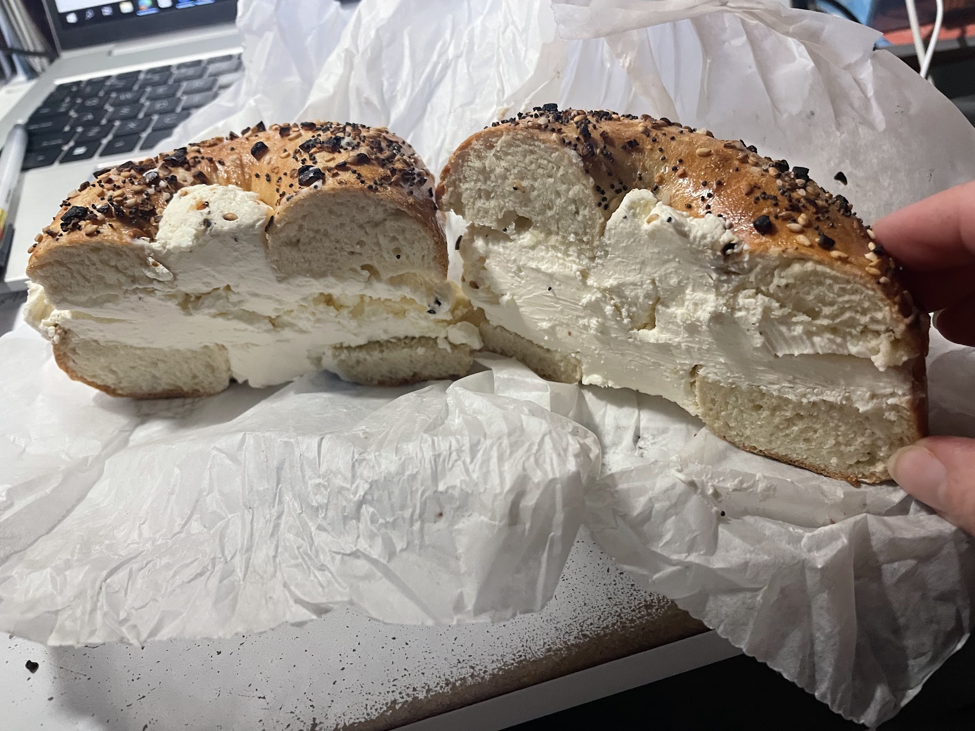 Read moreMy husband picked up bagels here because where we usually go was closed so we figured we give you a try. I had an everything bagel with a generous amount of cream cheese on it. It was OK. I was very disappointed in the fact that we asked for it to be toasted, and it was definitely not toasted. If the bagel was warm, it would have melted the cream cheese a little bit instead of having me biting into thick cold cream cheese. I would like to give you guys another try another time but right now I will have to say it was good but nothing that would make me come running back again. Also, not sure if you make the bagels, in-house or if they are supplied from elsewhere. I did not see it noted on...