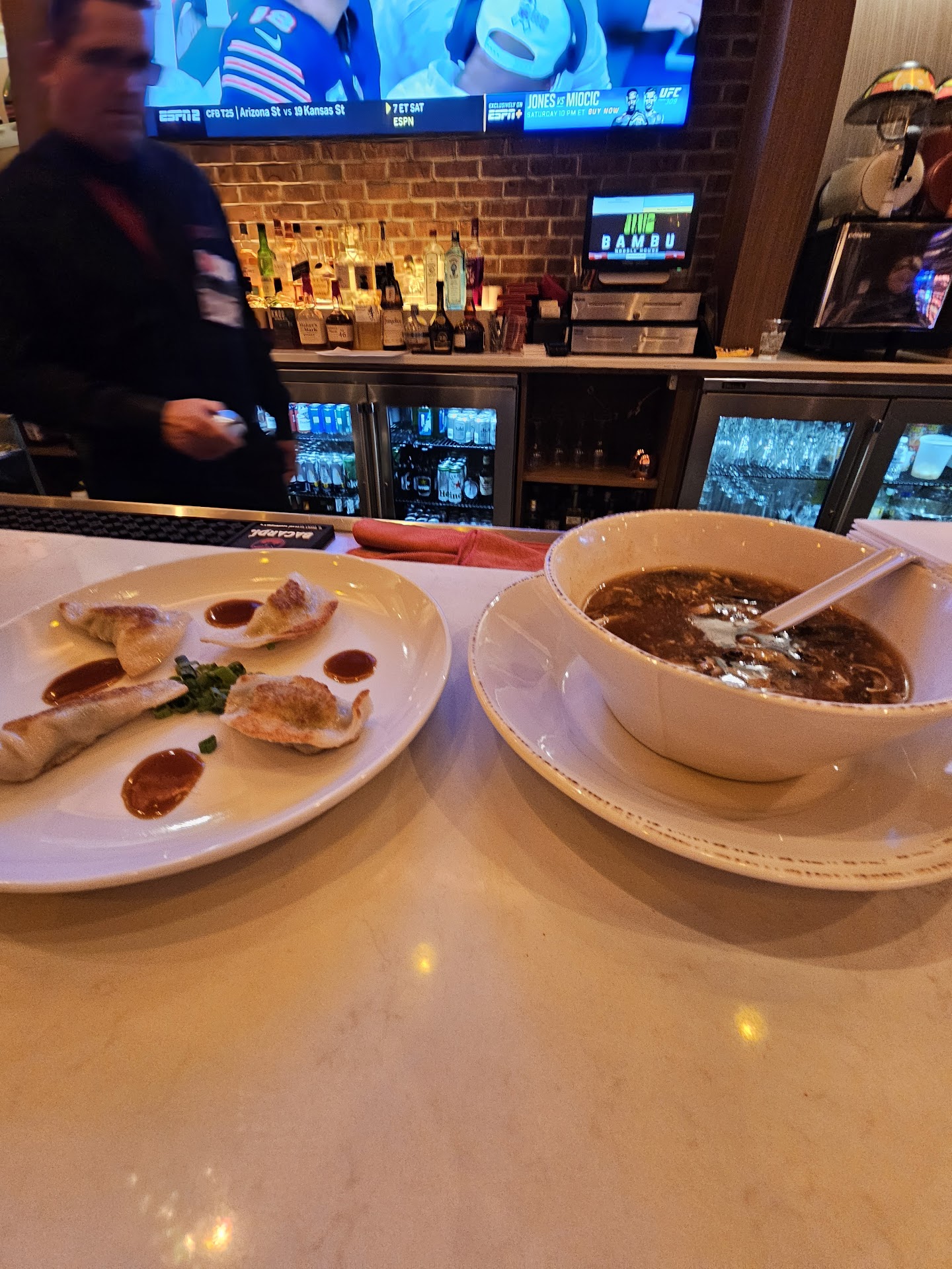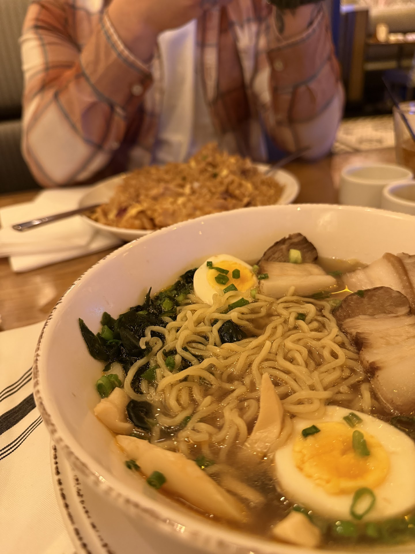 Read morewhen we arrived at 5pm, there was no bartender there, so we could only order beer or wine, no mixed drinks. we ordered sushi and spring rolls as an appetizer which were fine, nothing special but tasted fresh even though the presentation was nothing special. we ordered their house fried rice and the japanese ramen for dinner, both looked and tasted like they were microwaved. the fried rice lacked any sort of seasoning, had no vegetables, and was still cold to the touch in areas. the ramen was terrible. it came with three very tough, fatty slices of grey-colored pork, old hard boiled eggs, the broth was oily and flavorless, the noodles were glued together in a wad like they were from days ago. this place looked nice, our waitress was pleasant, but overall this was a terrible experience. we hardly ate a bite of our dinners and the price was over $100. this price included a glass of chardonnay (which was one of the worst wines i’ve ever had, i did not drink it), and two beers (the second one was ordered because i was not drinking that nasty wine!) will not ever...