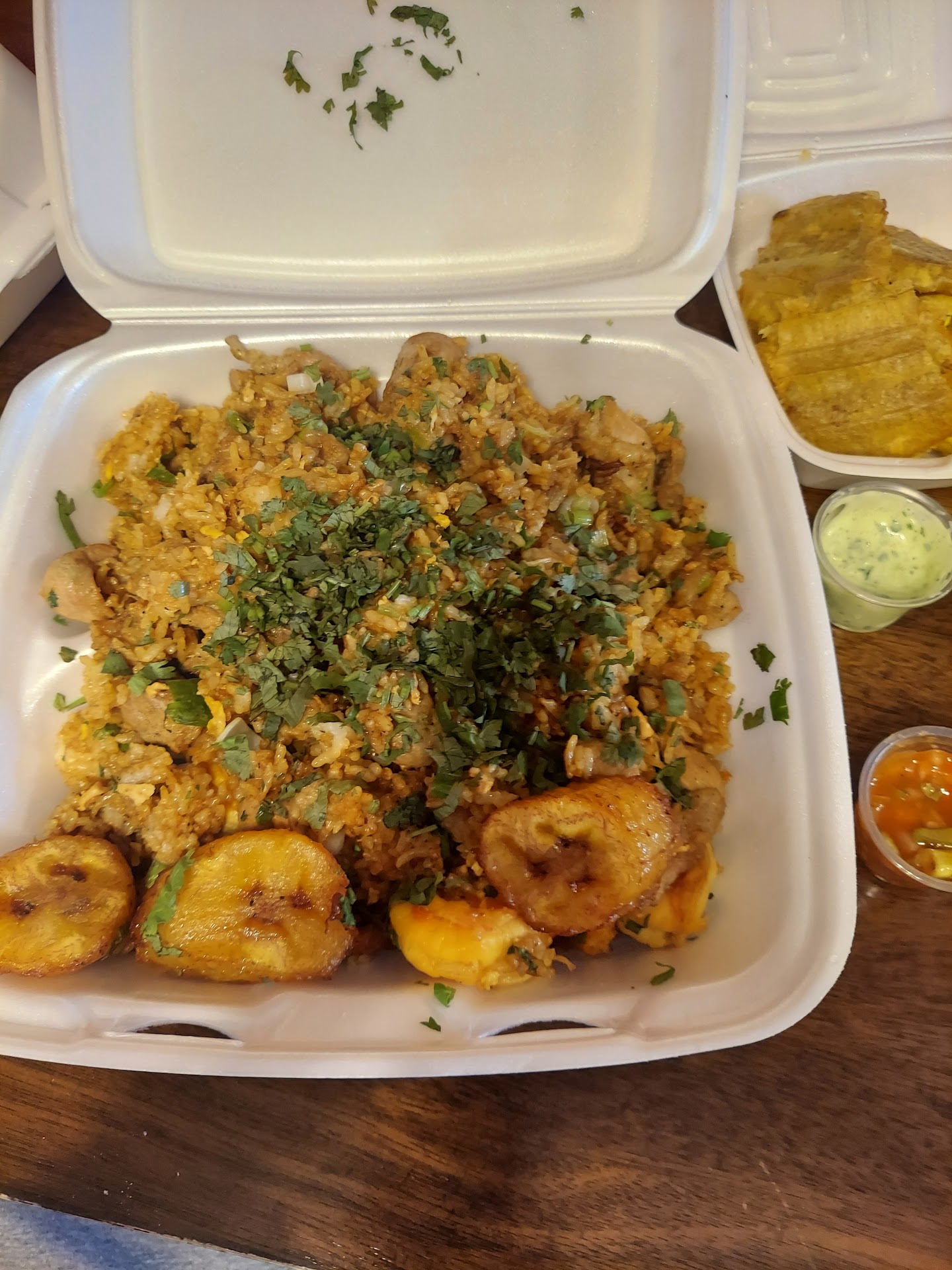 Read moreWent to this restaurant yesterday Apr 29th just to try it with family since we noticed it was new. We tried a bunch of different things to get a sense of their dishes. Of the appetizers we tried: Empanadas, Bolons, tostones and calamari frita All were good except the Empanadas. The crust was mushy and the cheese didn't seem cooked all the way. I'm used to a crispy outside and warm gooey inside. The three dishes we tried were steak, chicken and the mixed meat platter. They were all good as well! The chicken platter was the most flavorful and super juicy! Portion sizes are great we left with so much food to take home.