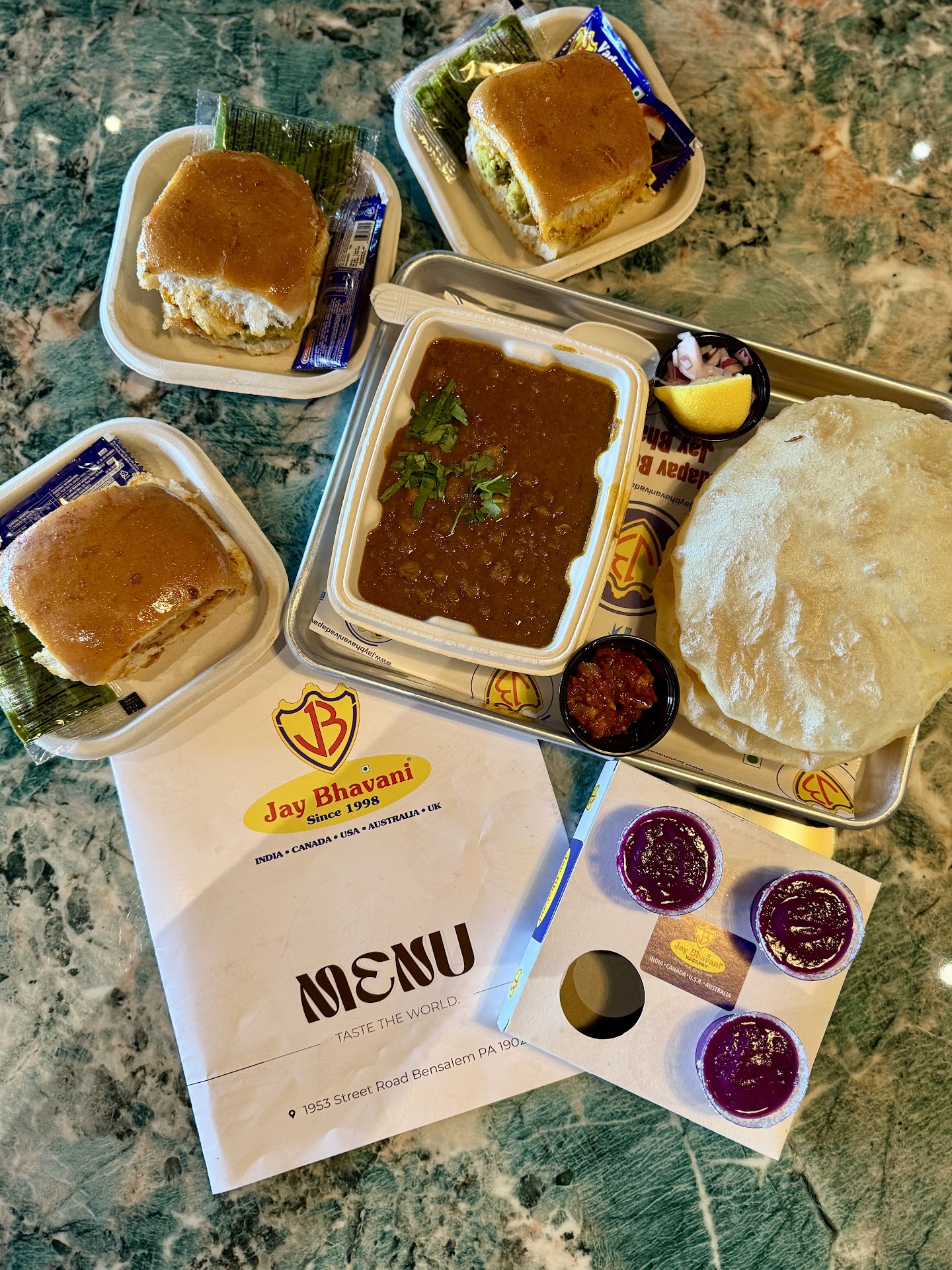 Read moreA Taste of India That Transports You! - Jay Bhavani Vada Pav, Bensalem Wow! Jay Bhavani Vada Pav in Bensalem is an absolute gem that brings the authentic flavors of India right to your doorstep. From the moment you step in (or unwrap your takeout, as in my case!), you know you're in for a treat. The star of the show, the vada pav, is simply perfection. Each bun is soft and perfectly toasted, encasing a beautifully spiced potato fritter that's bursting with flavor. You can tell they use fresh ingredients and traditional recipes – it's just like what you'd find on the streets of Mumbai! But it's not just about the vada pav. The chole bhature (or whatever the main dish is in the tray) was equally outstanding. The chickpeas were cooked to tender perfection in a rich, aromatic gravy, and the bhature were wonderfully puffed and light. It's a comforting and incredibly satisfying dish. And those purple cups (I'm guessing a sweet lassi or a special drink?) were the perfect refreshing accompaniment, adding a delightful end to the meal. The presentation, even for what looks like takeout, was thoughtful and neat. The menu clearly states "Taste the World," and Jay Bhavani certainly delivers on that promise. The location at 1953 Street Road, Bensalem, PA, is now firmly on my radar for authentic Indian street food. If you're looking for a genuinely delicious and authentic Indian food experience in the Bensalem area, Jay Bhavani Vada Pav is an absolute must-visit. Highly,...