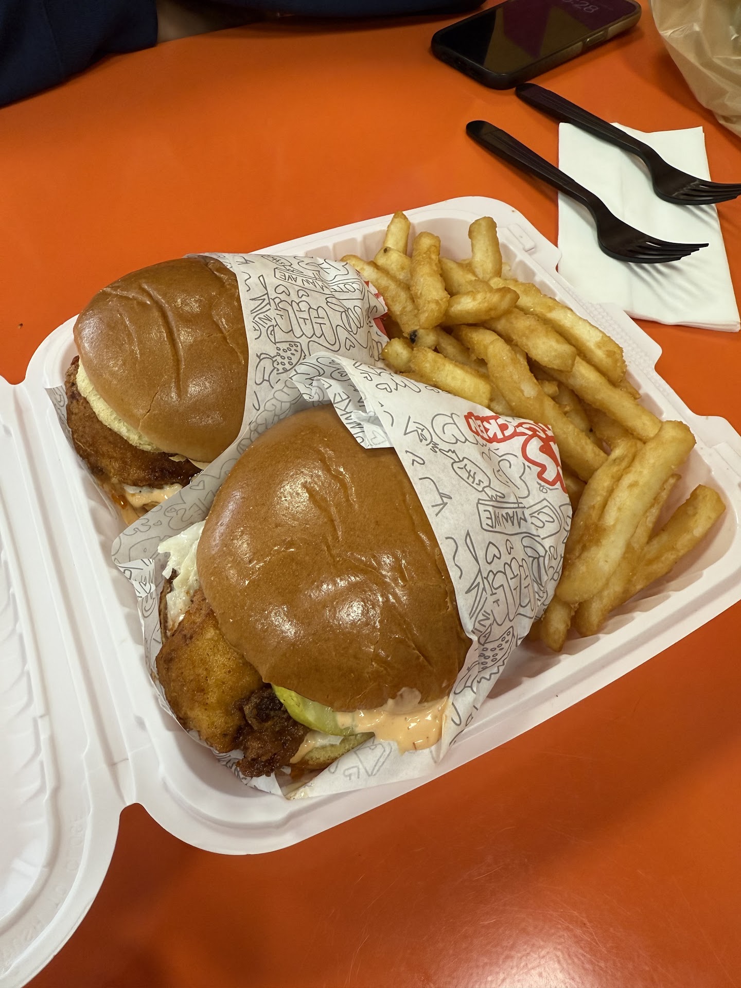 I wanted to try Nanu's cause I love Dave's and Asad's hot chicken so much. The menu at each place is pretty much identical. I ordered a hot sandwich and my fiance ordered medium. I wish that the fries had some sort of seasoning on them. They were very plain. The sandwich was absolutely huge. That is one really good thing I can say about the food is that you get a good amount for the value that you pay. We did notice though that there was no spice to either sandwich. That was very odd. I said something to the guy working at the counter to see if maybe we could get some of their spicy powder on the side to add to our sandwich ourselves. He was a bit puzzled and went back to the chef to discuss what was going on. They offered to remake us a whole meal with more seasoning and said they couldn't give me the seasoning on the side. I thought that was very nice of them but also felt like that was way too complicated for the situation. Times are tough for everyone and the food is good quality, I did not want it to go to waste just because it wasn't perfect. He then decided that he could put some of the seasoning in a sauce cup and mix it with their side sauce. I thought that was a good idea on the fly that he thought of to mediate the situation. It honestly worked and I added some of the sauce on my sandwich and it made a big difference for me. My fiancƩ felt the same way. The food was decent and everything but the no spice really killed it for me I think. I appreciated the willingness to try to fix it but for my first time it just wasn't what I was hoping for. I'm giving four stars though because I really appreciated him thinking outside of the box for me and also offering to...