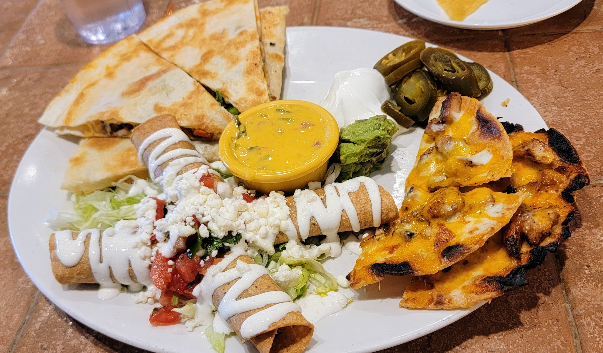 The Food wasn’t that good at all, you can tell the rice was like a frozen microwaveable rice by the taste and texture. The taste of the rice was ok at most. The steak wasn’t terrible a little tough but it wasn’t the worst I’ve ever had, the pork carnitas were salty and the flavor just wasn’t there. The Guacamole lacked in salt, lime juice, and didn’t have cilantro either so the flavor was really lacking. I took one bite of the guacamole and went right back to the salsa. The salsa was good. But definitely some sort of store bought salsa. I don’t understand how foods that take really little effort to prepare are below a certain standard. What I will say positive is that the frozen margarita was pretty good, and the honey chipotle fried shrimp wasn’t terrible either. They had ONE burger on the menu, which is funny to me it just seemed almost pointless, and the menu was really a lot to take in when all they serve is rice, beans, tacos, burritos, enchiladas, flautas, quesadillas, fajitas, and bowls. They definitely need a new and improved, better divided menu. One more thing I will say is the dessert LOOKED really good but I didn’t get any out of disappointment from my meal. Rating 3/10