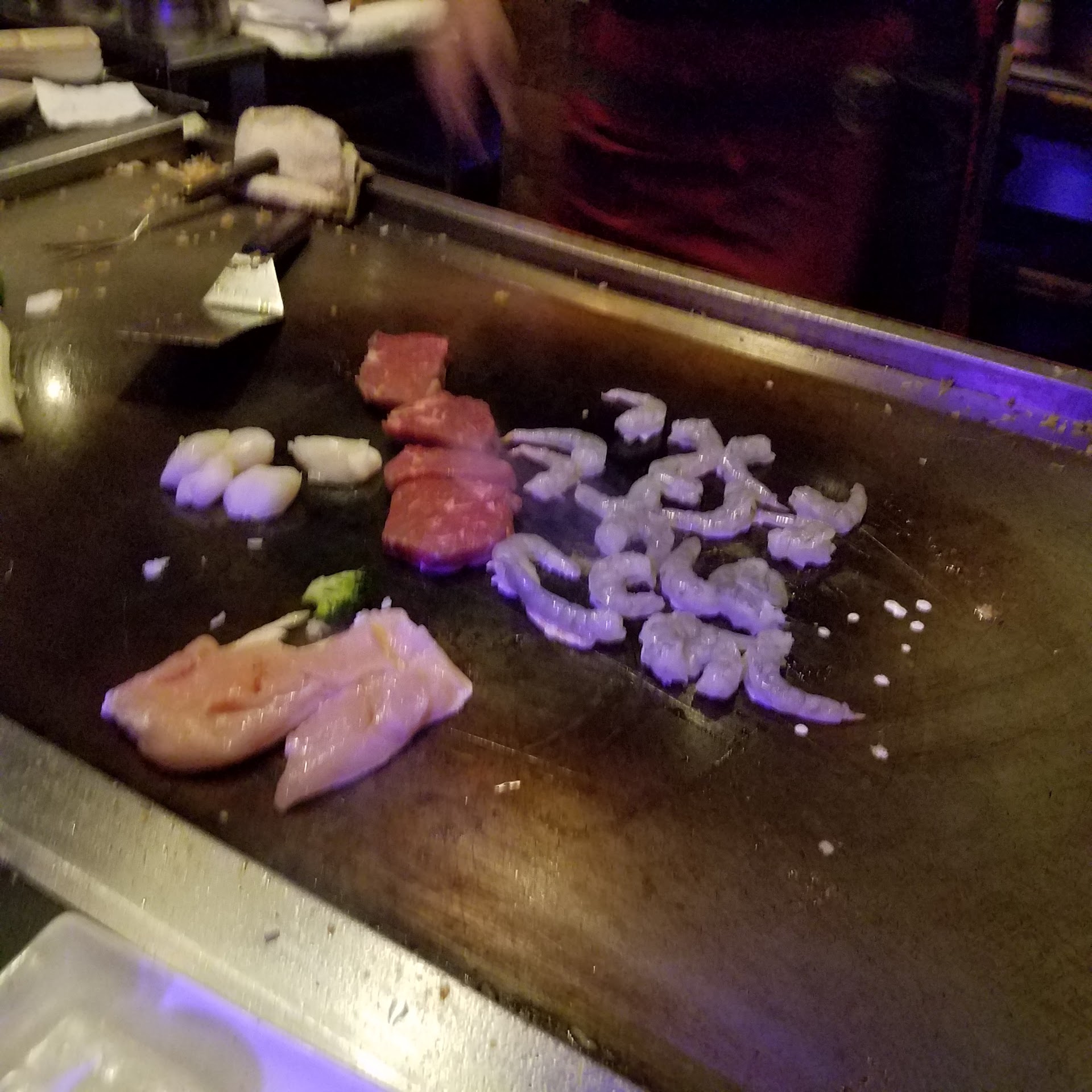 We got there early, were seated for hibachi, another group was seated on the other end of the counter after us. When the chef came, he cooked for the other group with his back to us. No show. No tricks. He silently cooked, served everyone’s food, and left. We called the waitress over and asked what was going on. She basically said “oops. Sorry. They prefer that range hood.” “But we were here first.” “The chef didn’t know. Sorry.” When we were seated, we told our waiter it was our sons birthday. He didn’t care. He was terse and to the point on getting our orders. After we told the waitress we were upset, she offered us dessert on the house. We were stuffed because we ordered sushi and hibachi for all 5 of us. But we accepted, hoping to make the most of a bad night. It would have been better if they had comped part of the hibachi since we didnt get the show we were paying for.