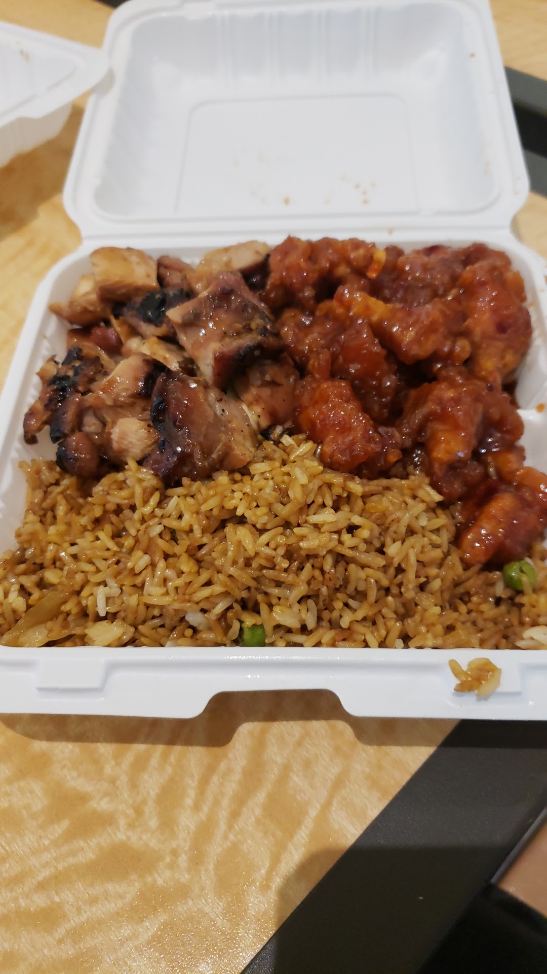 I believe they're bias..don't go here ever of you want good customer service...my friend ordered multiple plates of food, but when she went to pay. The cashier would not let her pay with our debit card. She kept pressing something on the machine to try to make it look like her card was fraudulently used..all because they wanted cash because it was such a large amount.. So my friend went to the bank and they said it was nothing wrong with her card. And most importantly they didn't even see the transactions being put in or even being attempted for use. Wasn't even all that great anyway.. the noodles were very oily and the chicken was...
