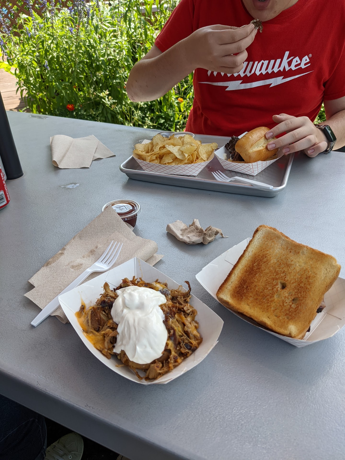 Absolutely delicious. Got the brisket and some Mac and cheese. Mac and cheese was deliciously smokey and the brisket was tender and juicy. Was given a piece of cornbread that was full of flavor. Will be returning with a bib on my neck and a fork...
