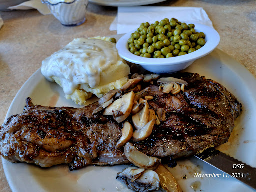Read moreMy fiance and I decided to try somewhere different than our usual hole in the wall restaurant. This one is not a hole in the wall but an all around little cozy family restaurant. The staff are friendly and I do appreciate good friendly staff especially when they are great towards each other. I simply wish the food was a bit better, what I mean is it looked good but lacked flavor. Both myself and my fiance ordered the 6oz ribeye with eggs, hashbrowns, eggs and toast as well as a order of French toast with strawberries and whipped cream on top. The steak looked a little worse for wear and lack any kind of flavoring, it's like it was just pulled out of the fridge and slapped on the grill. The eggs and hashbrowns had to be seasoned with salt and pepper. The French toast wasn't terrible, but still somehow managed to lack some flavoring. Though it is a cozy little place it seems like it is more fitting...
