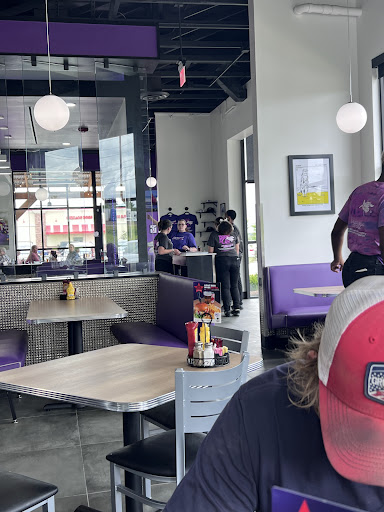 Read moreAfter Red Robin shut down, I was disappointed but decided I would give Purple Cow a fair shot, even though I am an adult who enjoyed an adult place to dine and have a drink. I went a month after their opening in Benton, and I had to sit at the bar, which was fine, even at noon. I had to ask for someone to wipe off condensation from the bar which I was told had occurred bc of condensation from the frozen ice cream containers. It was very wet, and even after wiping it very much, it was still wet. I couldn't lay my phone down and the menu stuck to the bar. I ordered a supreme burger. It was dry and over cooked, and seemed to have no seasoning on the meat. The menu makes you pay extra for fries with your burger and touts them as something really special. I paid extra for fries, they were typical fries, and all was crammed on a platter so small that I had no room for Ketchup. I did not want lettuce, tomato, etc...for a mushroom Swiss burger but it took up room on my plate anyway. I was not impressed. As an adult with no young kids, I will not be back. Dry burger, nasty wet bar, extra money for fries, no room for ketchup. I miss Red Robin.. Burgers were juicy, fries were endless, bar was clean and dry. Purple Cow is what it sounds like it is...a place to take your kids...