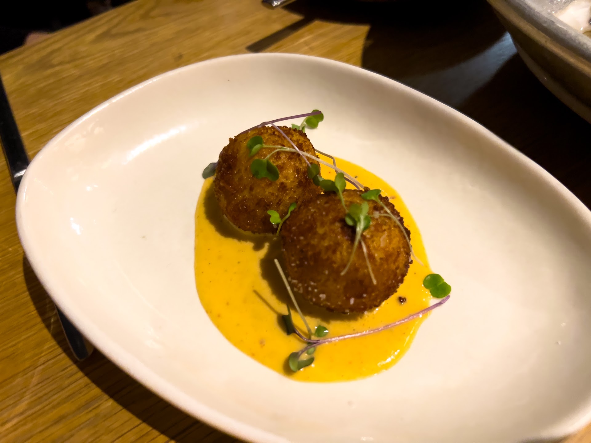 The chicken croquettes served as a delightful Amuse-bouche, setting a playful tone for the meal ahead. However, it was the standout dishes that truly captivated our sensesâthe rich summer squash ragout, elevated by a perfectly poached egg that added just the right touch of richness, and the bone marrow paired with grilled sourdough, a harmonious marriage of textures and flavors.