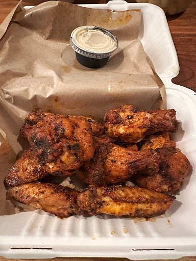 Smoked chicken wings - absolutely incredible. Get the dry rubbed wings and ask for spicy. Theyâre medium spicy by Texas standards, but they were incredibly flavorful. I would go there just for the wings and beer.