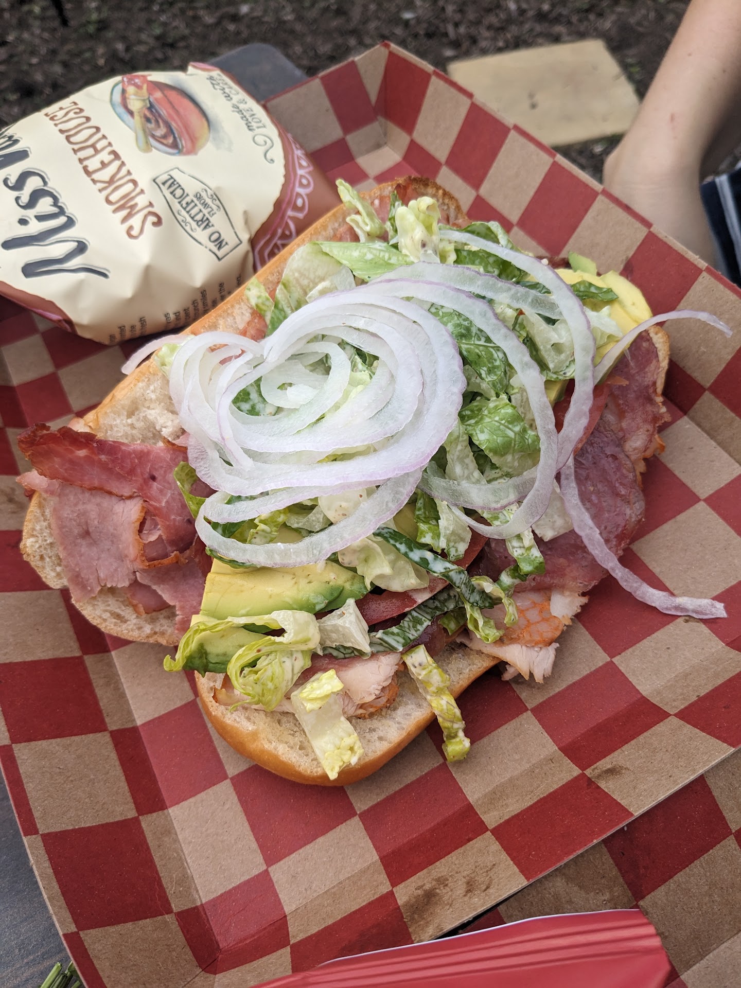 Read moreGreat spot with a yard to go hang out and have a beer! The portion of food I ordered was small, not many options and very overpriced. It’s one of those that asks you for a tip but you order at the counter get a buzzer, go up to get your food when it’s ready, and throw away your trash when finished. That’s all fine but just a heads up that if you want to tip, it’s not for the service. I also want to note that the menu did not list any prices so I was surprised when I paid. I ordered a sandwich I can’t remember the name but it was the one with ham, peach relish and ghost pepper cheese — it comes with a side of chips (bag of miss vickies) or for +$3 you can get a small bowl of fruit or +$2.50 for a side salad. They were out of fruit so I opted for a salad. I was disappointed with the sandwich (didn’t taste peach and wasn’t spicy at all) the salad was fine. Not worth $26+ for the food but like I said, it’s a good hang out spot that I’d be happy to come back to have a beer and play...