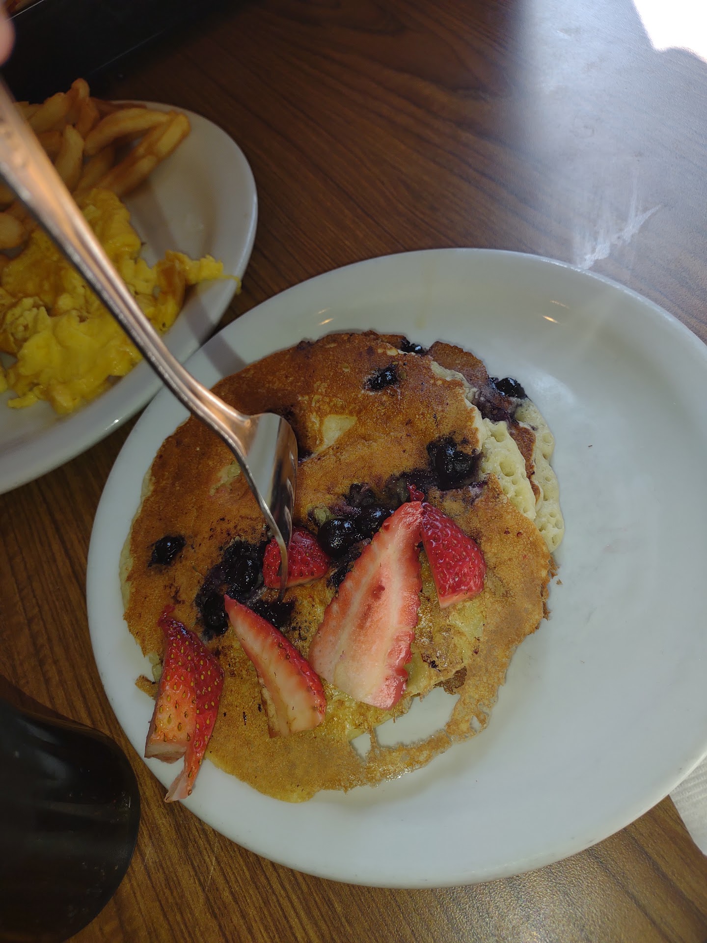 SECOND VISIT TO DENNY'S: Sat in the same spot on the bar with my fiance a few weeks ago... I got my coffee. He got his juice... didn't get a refill and got forgotten (Once again!) The manager was our server and after 15 minutes of waiting this time, and noticing her attention was elsewhere, I flagged her down to get us refills and take our order. She apologize and even said she forgot us. (maybe there is something about forgetting what's right in front of you?) Nevertheless, she got our order... Food came out quickly, but she forgot my pancakes as part of my order... she corrected and we got everything we needed. Food was very good quality and still hot.