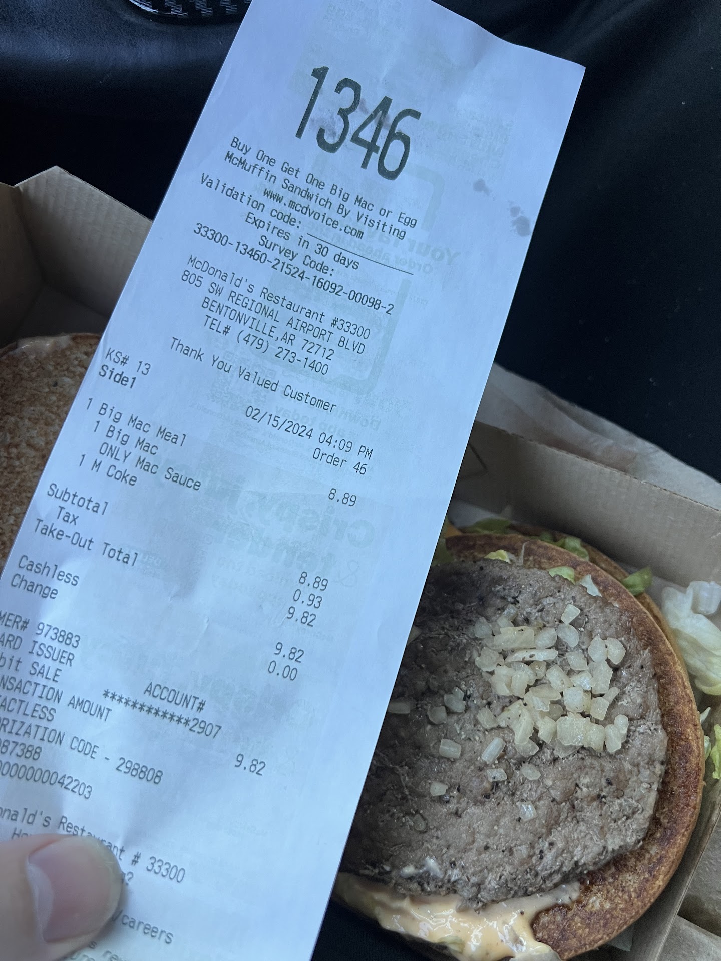 Read moreI have never been treated so rudely before in any McDonalds or any Resturant in NWA. I drive Uber Eats and have done almost 2K deliveries. I waited patiently for my order to be completed. The young lady fulfilling mobile app orders was moving super slow and very snippy to everyone around her. Again, I waited patiently for her to completely my order. When she handed it to me only half of the order was bagged properly and sealed as they are supposed to be. Instead she handed me the 1 bag and a full tray of open drinks. I asked kindly if she would please bag the drinks as they are supposed to be sealed. They are supposed to do this to protect the driver, the customer and the Resturant. She processed to start throwing things and saying very hateful things. When I asked her what her name was she refused to tell me and just kept yelling "have a nice day ma'am". I refused to walk away and kept asking can you please tell me your name. She got a very snide, hateful look on her face and said "Mary" however I have a feeling that's probably not her really name. It was such a scene she caused that the family behind me actually looked at me with huge eyes and said "WOW, that was so uncalled for and super rude". The lady even smiled at me and said hope you have a great night and sorry you were treated that way! I smiled back and said thank you and good luck. The fit this young lady just threw and the hateful things she was saying is dumbfounding all because I asked her to please do her job correctly. I was honestly very nice about it too like I always am. I will never personally spend a dime in this McDs all because of the way she acted. Nor will I accept another Uber request from there....