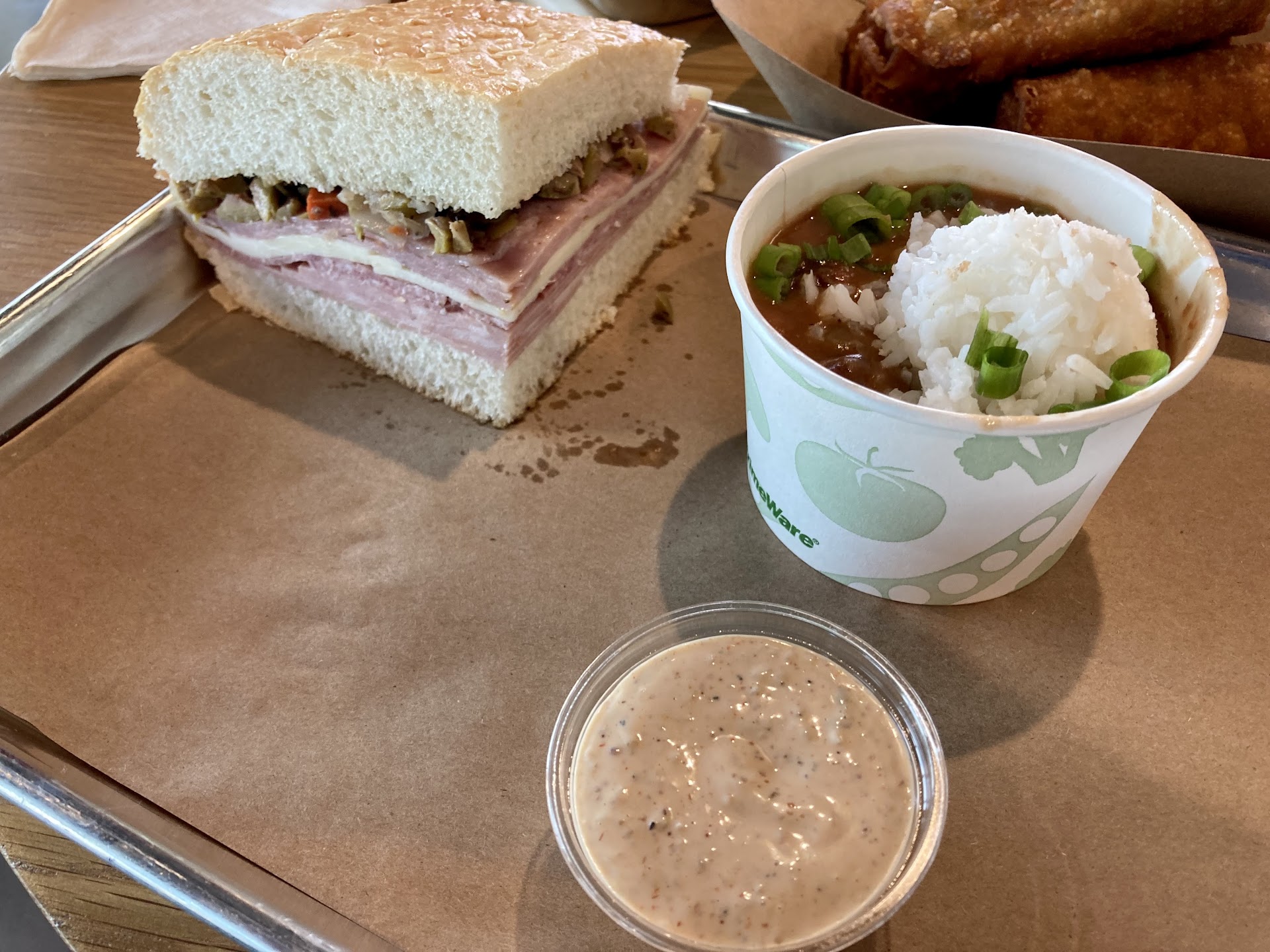 The muffuletta was really, really good. It wasn't hot and super greasy like the ones a lot of places outside of LA serve (I grew up in louisiana) but it's authentic to what you'd actually find in NOLA. And it was really, really good.