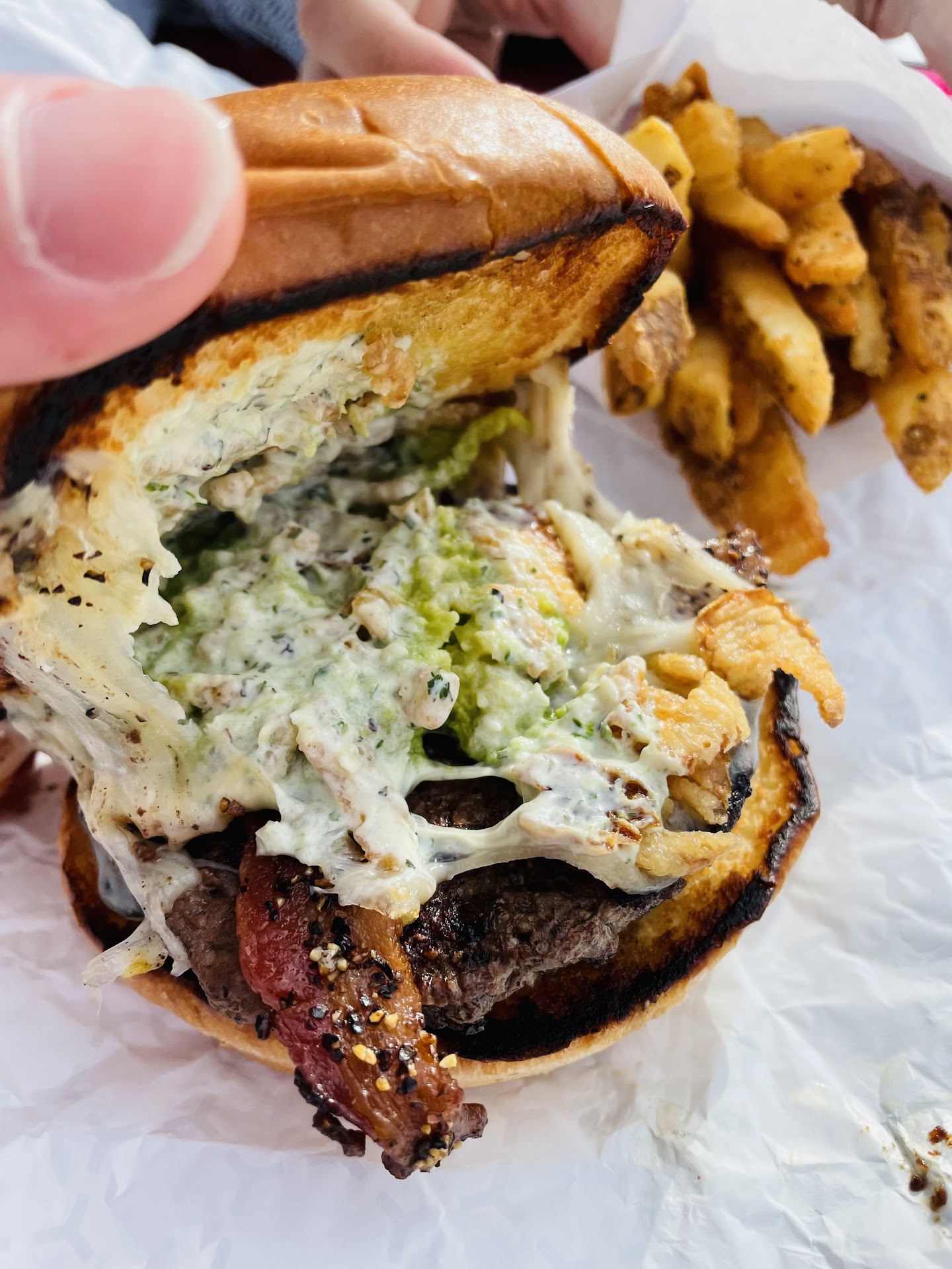 Took my wife and our friend to this rad little truck. The drive for me was 30 minutes and let me tell you I'd do it again. Wife gets veggie burgers and has had them in many states and this she said was as good as any of her favorites and called it the best in Arkansas. To her it rivaled one we had at a high dollar fancy place in Utah. I had the Santanico, a burger with sautéed peppers and queso. The friend had the spicy burger. All of us agreed this place slaps. The stamp on the bun signifies the same confidence that the food then earns. Juicy patty, flavors balanced and bold. The fries and onion rings were well made, I'd suggest the rings just slightly over fries. The batter was fantastic. The fries are sort of a cross of home fries and standard burger fries, thick yet crisp. For dessert we tried the creme brulee and it almost matched the famous Flemings version. The people are nice and the atmosphere is cool, the truck plays classic horror tracks and is decorated with campy but fun horror relics. I gave 4 stars to atmosphere only because I wish it had shade. Now what can be improved? Well it probably would not be the food very much, personally I'd toss some chips onto my burger just so it had one more texture in it but that's picky. We agreed it could be cool if they pulled off some interesting drinks and not just canned cokes and bottled waters but it's not necessary and that's tricky without booze. 😉 Go. Go. Go to this truck and tell them how you really feel. It's going...