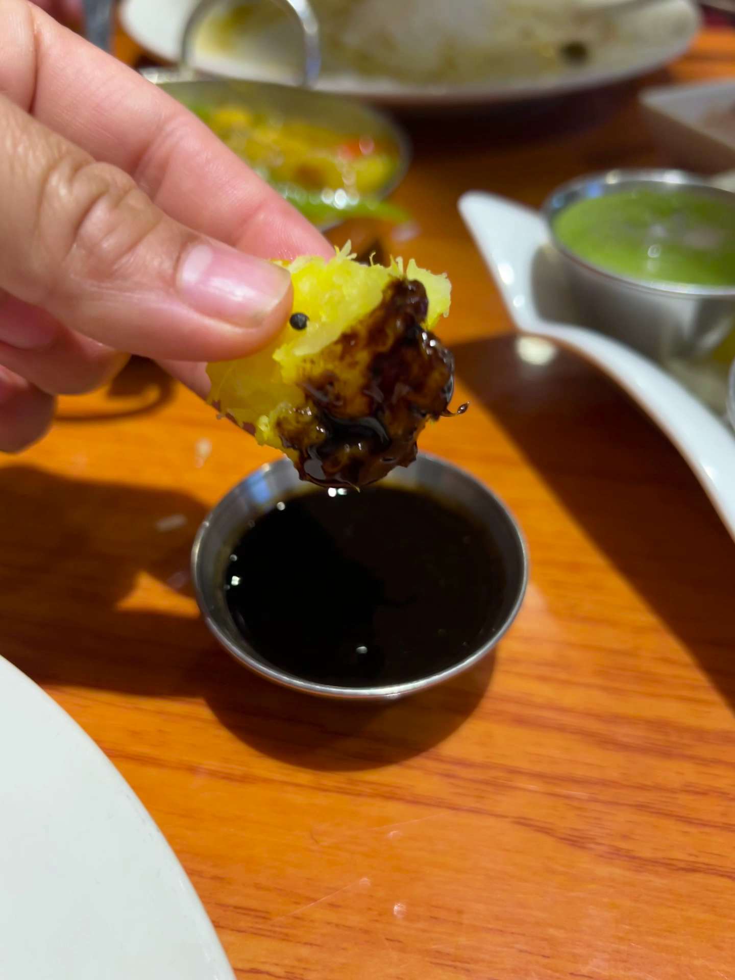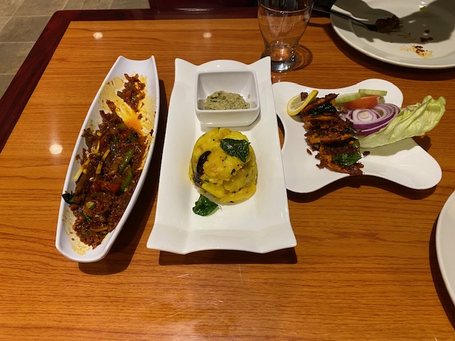 The kappa chammanthi resembles yucca in texture; except none of the stringy tough bits! Paired with a spicy, tart, cream-based sauce for dipping. This was perfectly satiating.
