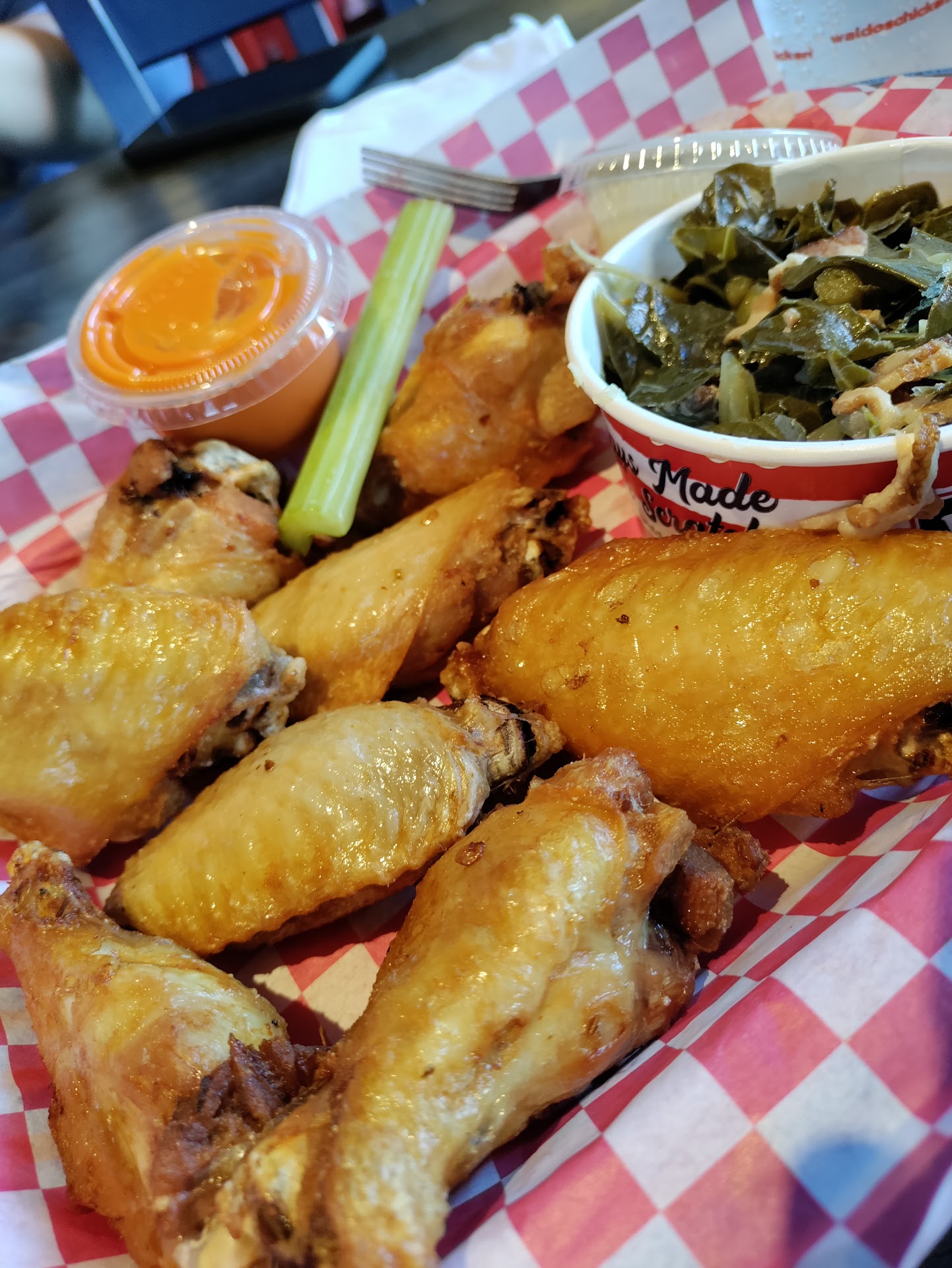 Ā Ā Ā Read moreI am a bit conflicted about this place. The taste of the chicken was great. Some of the pieces were crispier than others. The leg was easily the best texture as it had the crisp snap, wasn't greasy at all, and the perfect temperature. The wedges were good. I was tempted to complain that there were too few, but I was too full to finish the meal by the end anyway. The slaw was perfect. It is tangy, bitter, and sweet all at once. Waldo's even has awesome sweet tea. Also, possibly the best onion rings I've had in years. Where things fall apart for me is the thing they call a biscuit. My impression is that the chain is proud of these things. Growing up in the south has given me a lot of exposure to biscuits. These don't look, feel, or taste like a biscuit. It's more like someone bought minimuffins from a grocery store and put cheese on them. Next time I go here, I'll be bringing real biscuits with me. A good biscuit would have completed...