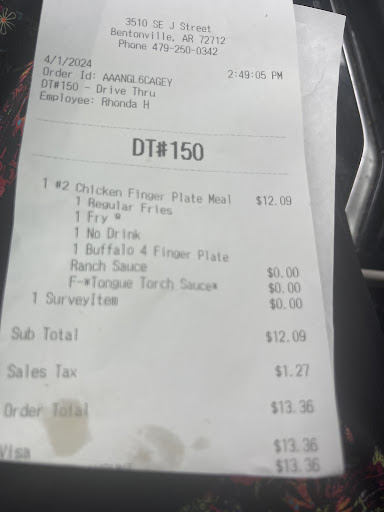 Read moreMy main complaint is about the lack of being able to Communicate a complaint. I ordered a salad and two 4 piece meals. I asked for no coleslaw extra toast on both of them. I ordered an additional chicken strip with my salad because I wanted to give one to my dog for a treat. I asked for extra ranch. I didnât get the chicken strip that I paid for. I didnât get the ranch I paid for they didnât give me toast. They gave me coleslaw and my husband cannot stand coleslaw my main problem with this is that itâs an easy fix. I just wish they would have Let me drive back And fix it for me, but I couldnât get anyone on the phone. I called six times just to get a voicemail every time. Usually this location does a great job the past two times Iâve been there. Itâs been absolutely terrible. Also, I can understand cold chicken strips on the salad, I donât love it but okay fine, but they were so stale, I couldnât even eat them. Iâm just saying if you have a problem with an order youâre gonna have to drive all the way back there and hope that they were willing to fix it for you. The most annoying thing about the whole thing is that they wouldnât pick up the phone. I would rather come back tomorrow and pick up a ticket strip and a piece of toast but they didnât even give me...