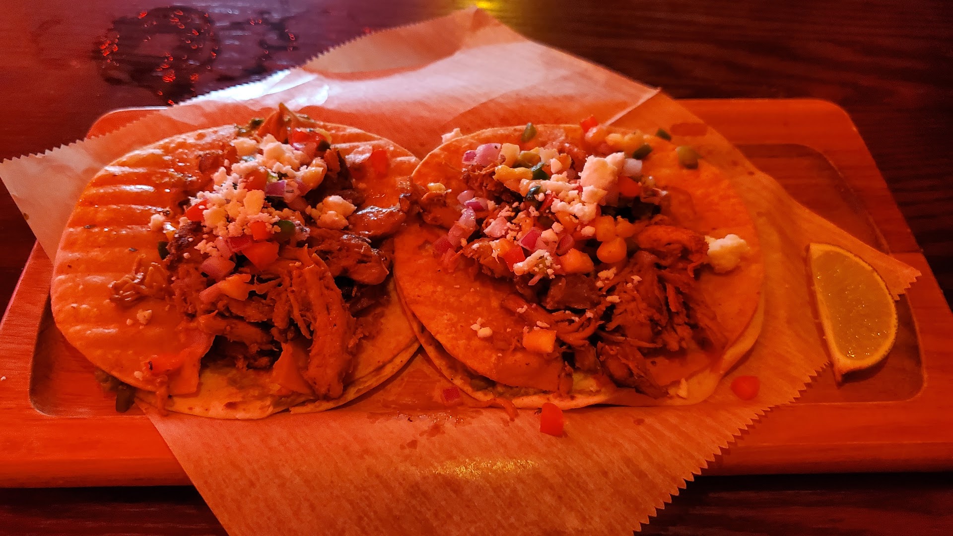 The Food was good. Their Queso Blanco is 10/10. I got their Ghost Whisper Tacos on both visits, and holy smokes do they pack some heat. I'm talking, eyes tearing up, nose running, feel-it-the-next-day hot. Not for the faint of heart. Their new shells are super crisp and crunch loudly when you bite into them. Defiantly not Old El Paso. I will say that the Double Deez style is tasty, but kinda overpriced. Its $4 extra per order for hard shells, and a smearing of queso and Guac. You pay extra for Guac at Chipotle, but its a heaping scoop.
