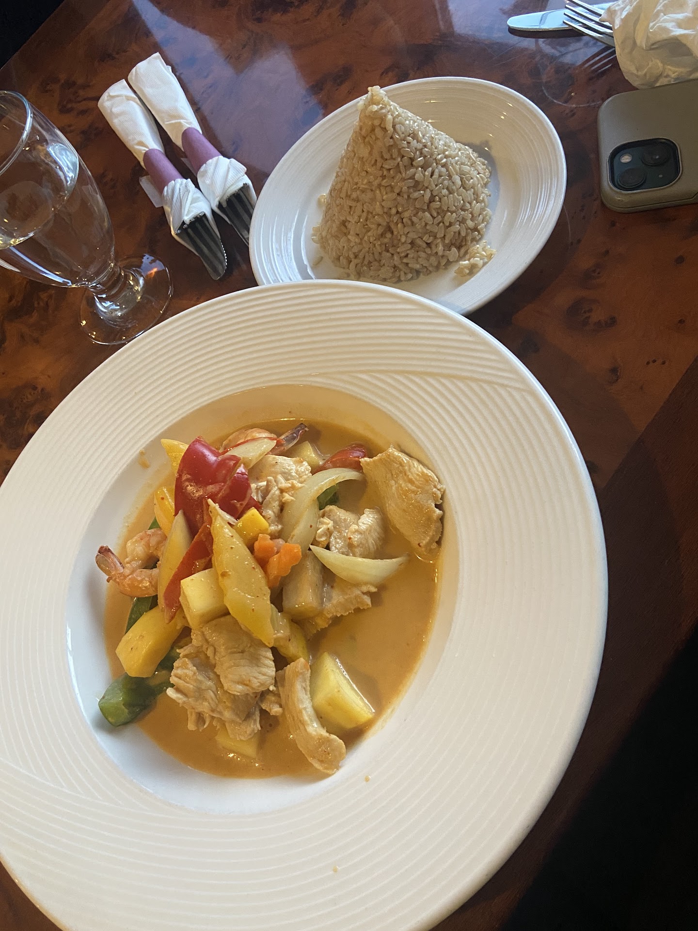 I ordered the Pad Thai with chicken, which was priced at $15. In the past, I recall meals being served with a side of soup or a small salad, but that is no longer the case. The dish itself was disappointing from start to finish. The Pad Thai lacked spice and flavor, tasting more like reheated leftovers than freshly prepared food. The chicken, in particular, was subpar—it didn’t taste fresh and gave the impression of being reheated. For the price, I expected something far more appetizing and reflective of the vibrant, bold flavors Thai cuisine is known for.