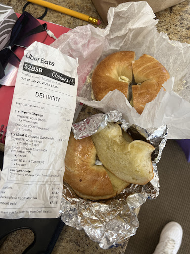 Read moreEveryone who knows me knows in love a good bagel in the morning. I was SO excited to try these bagels based off everyone’s reviews ! I Found this place off Uber. I ordered a bagel with cream cheese and a bagel with bacon and cheese no egg. My entire order was wrong but it had the right receipt attached to the bag the food came in. That just means someone wasn’t paying attention to we’re the orders were being placed. I was given TWO bagels with butter. Now that being said I’m giving it a 3 star because the bagel itself was good and I do like a bagel with butter. I’m just super upset, I was looking forward to the other items I ordered. I will try again hopefully the order comes out right the next time. If not I definitely will not be reordering...