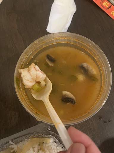 Tom yum soup with shrimp had 2 shrimps in it, flavor was so-so and not as spicy as they said it would be (tasted mild but they said it would be medium spicy)