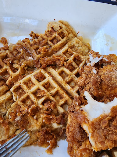 Ā Ā Ā Read moreIt's absolutely horrible!!! The vibe is really backwoods 1970 diner, the tables are sticky and the chairs are dated and dirty. The patio seems chill enough. I've been to dives and hole in the walls with great food. This place was neither. Owned assumingly by two brothers who both were BEYOND RUDE. The fried chicken wasn't bad, but the gravy for the demon sandwich tasted like it came out of a can, and they added butter and sugar. I had the ceaser salad, the avocados were fresh though the dressing was watered down and very bitter and the lettuc tasted dirty. When you asked for anything, the man huffed and puffed, snatched things off the tabled, and acted bothered the entire time serving us. The waffle looked beaten up and deflated. The syrup was watered-down as well. My daughter's friend burger was burnt extra dry, with odd orange looking garinsh. They wanted to be upscale towards the end with garbage food. The bbq tasted like ketup, the burger was dry and overcooked, the space was dirty, and the service was horrific!!! Not once did they refresh, refill, or ask about the quality of our food. We wash our vegetables! I took one bite of that salad and left it there. A nightmare experience. If you love good gravy, real flavor, and a clean up beat environment, this place isn't it! Not the...