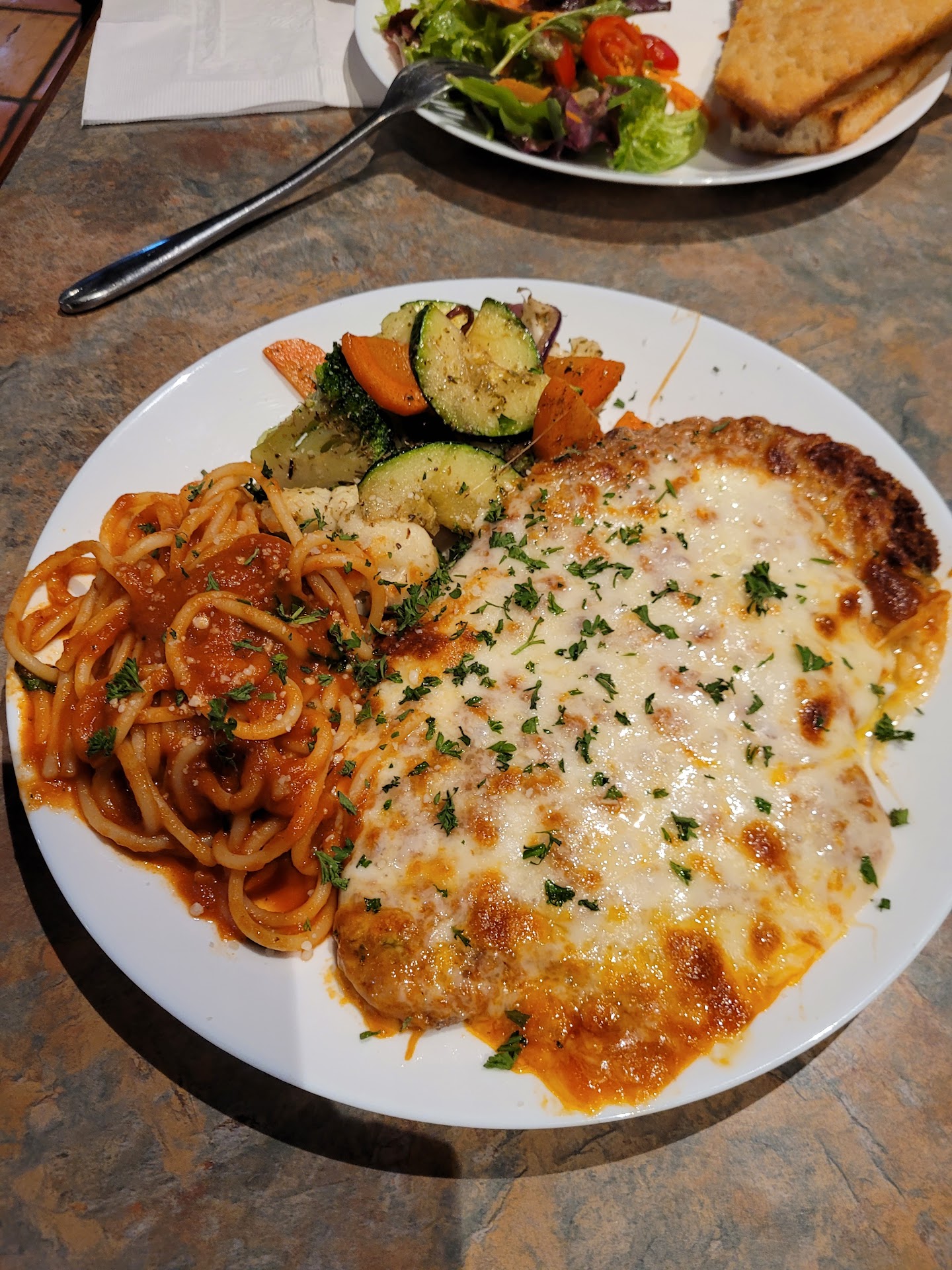 Bobby G's looks like a casual fun place to have a meal with friends and family. The menu is pretty basic Italian foods you would expect at a casual dining restaurant. It has tv's around to watch a game and enjoy your food. For me, the food was just ok. I did not really enjoy my food. I ordered the chicken Parmigiana, stuffed breadsticks, and the Ham & Gruyere Panini. The best out of the 3 was the panini. It had thick slices of ham and crisp bread. It was a little dry and could have used more of the garlic aioli. The Chicken Parmigiana looked great with a good sized cutlet but it just lacked in flavor. As for the breadsticks, it looked great but once again lacked in flavor. I love stuffed breadsticks or stuffed crust but this was just bad. It was too much bread versus stuffing and the cheese had no flavor. TBH, Pizza Hut's stuffed crust was far superior to what I ordered here. It also did not help that this was the last to be served to us despite it being a "starter." I asked about it after having been served the main dishes and although they said that it sometimes takes a while, I frankly think that they simply forgot. If the STARTER takes that long, first they should inform the customer upon ordering AND they should perhaps ask if they want their main courses first AND they should perhaps not list it as a STARTER. The staff were all very friendly but just lacking in service. No one checks on you nor provide refills on drinks. It was more self service in that I had to repeatedly go up to the bar for help. Overall, the food was barely ok and the non-existent service, I would not...