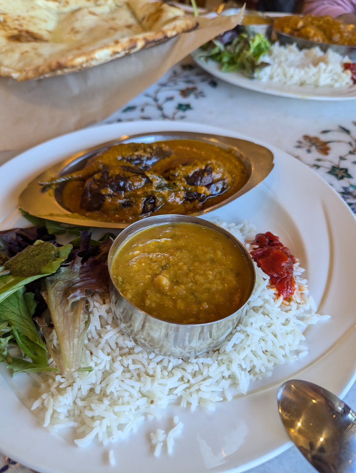 Read moreThe menu delves into dishes from different parts of India beyond the mainstream ones we usually see at Indian restaurants in North America. The detailed descriptions on the menu help you learn more about what you're eating. Almost all entrees come with rice, creamy daal (lentils) and some greens. The naan/kulcha were large and fluffy. The bharwa karela (bitter melon) was very flavorful and bitter. Instantly took me back to my childhood.