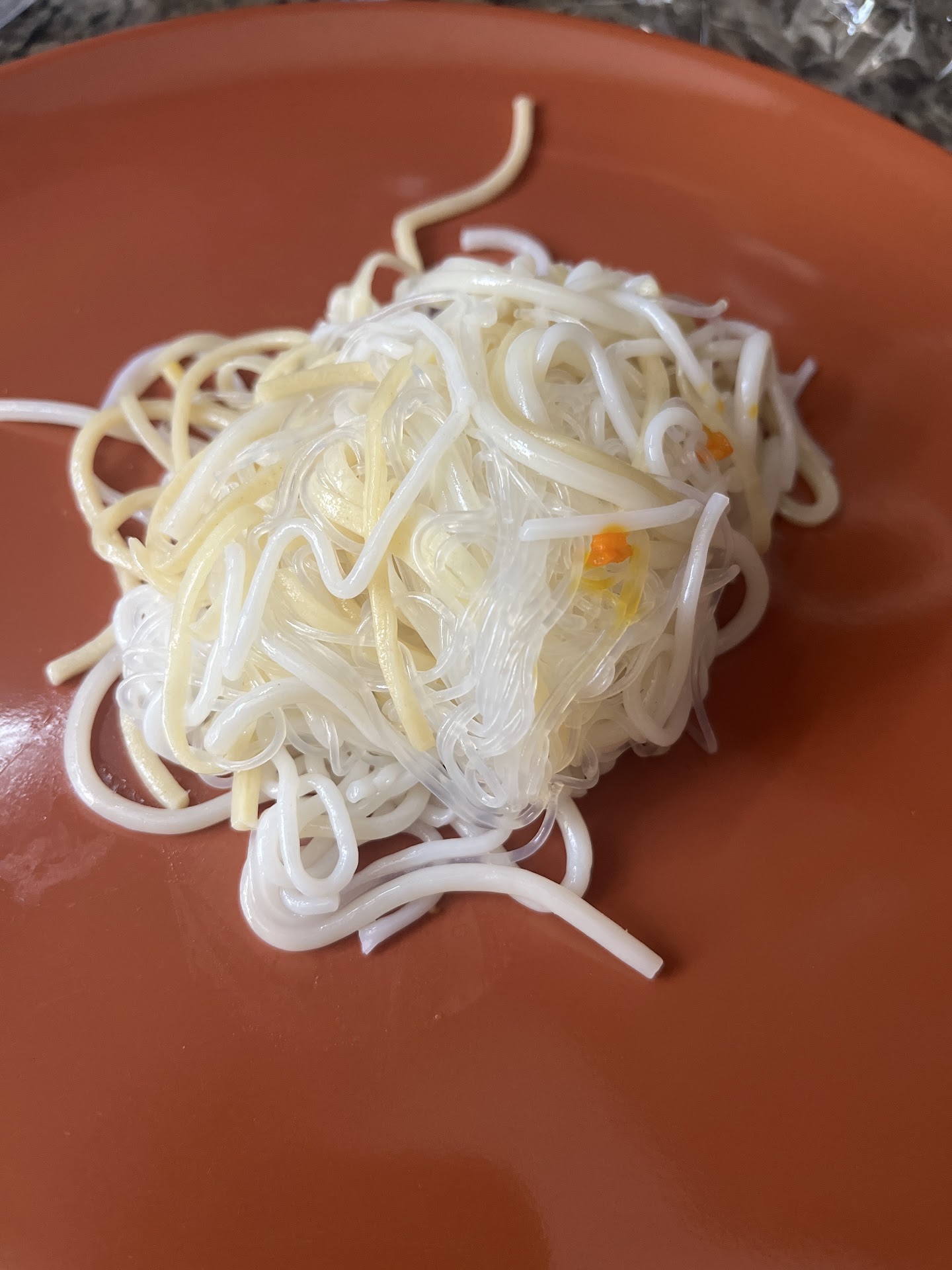 My Rainbow Salad was disappointing. I got the tiniest amount of what was supposed to be 3 different kinds of noodles? I got like maybe two strands of each and then mostly vermicelli. And then the saddest part was it was alllllll cabbage after.