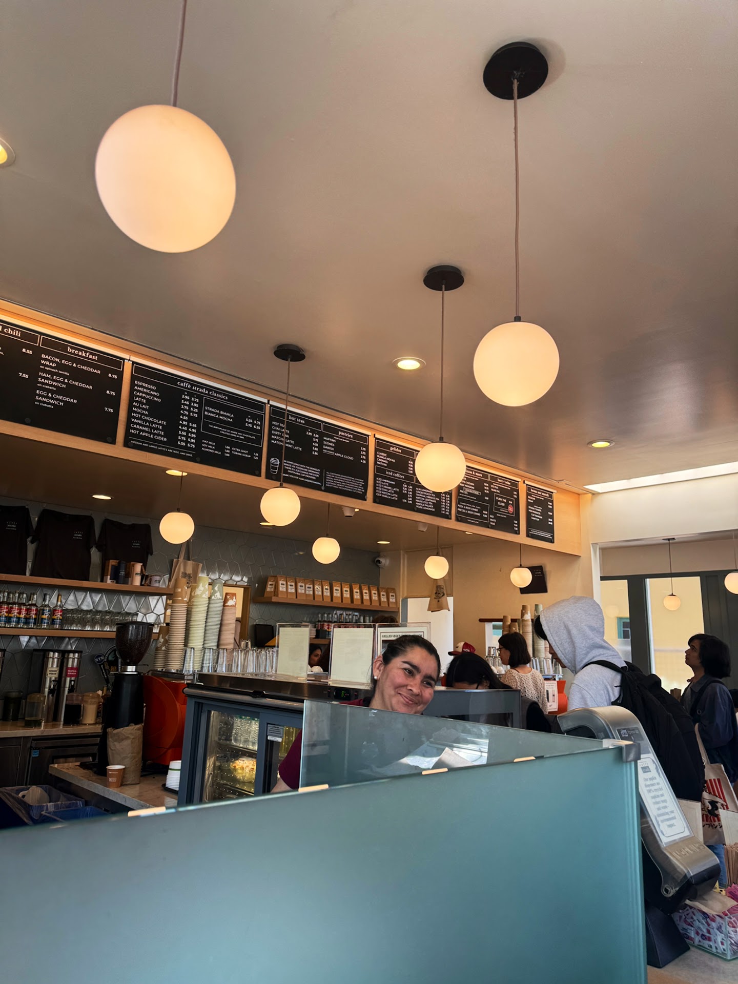 That said, I was a bit disheartened to see how many people were enjoying their coffee to stay, but in to go cups. I understand that these to go cups might be compostable. But a quick glance into the recycling and trash bins shows that there is no delineation between the two. I wonder if there are ways that the barista can work clearly articulate the for-here option, by asking if people are staying to work or meet a friend.