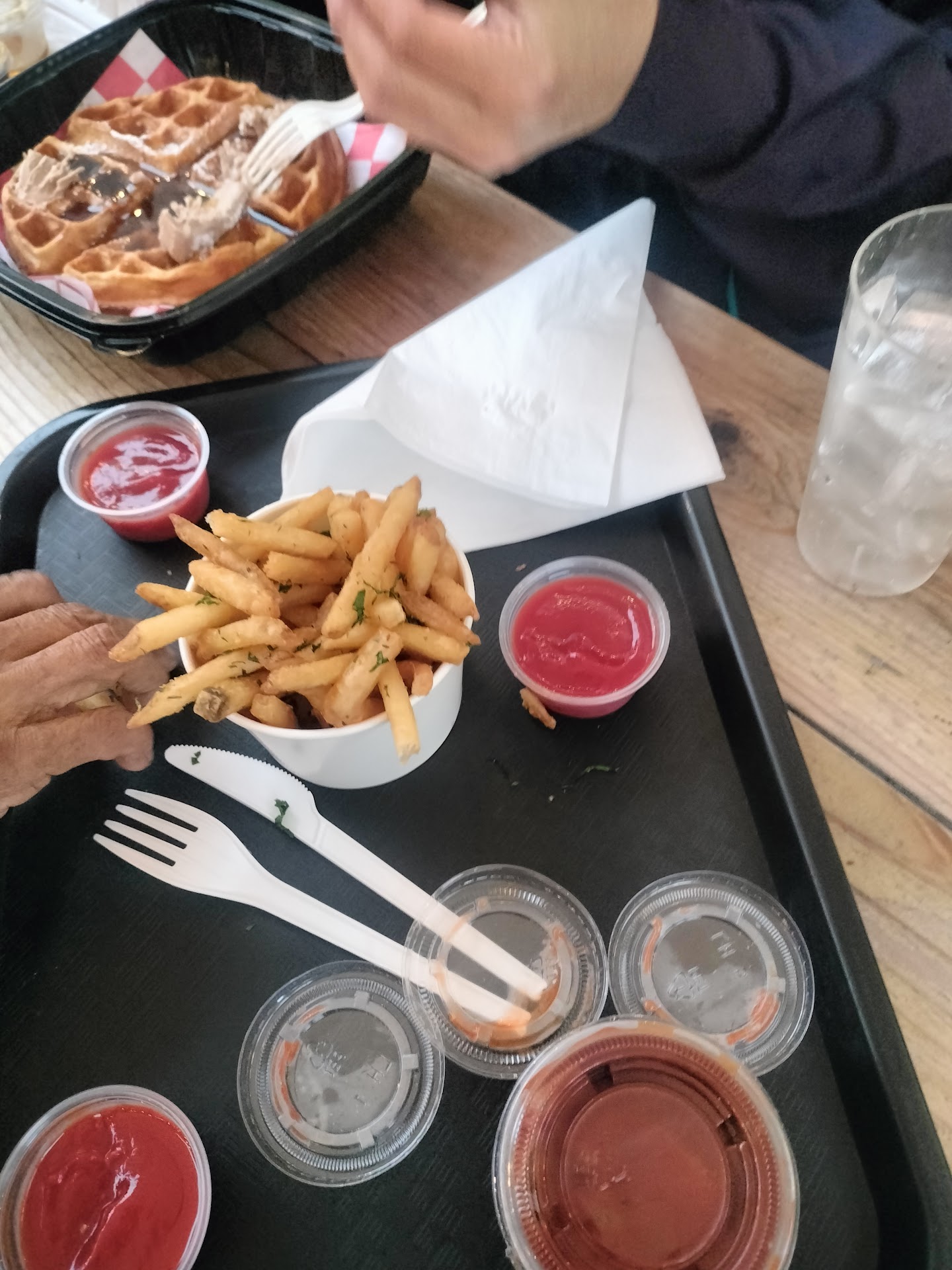 Ā Ā Ā Read moreNice little restaurant in the cut , big food coming across the window! Take your time to find this little gem just off San Pablo in Berkeley. I had a tri-tip sandwich, it was so big I literally needed a cherry picker to get it out of the box. Tri-tip with thinly sliced seasoned with salt and perfect smoke , super tender and bathed in coleslaw . French fries were so amazing everybody at the table just helped themselves. You definitely want to get another order of those if you're with friends. It's rare that you find a homemade fry that's actually good these people do it extremely well. My friend is a fan of waffles and pancakes and was thrilled to see a waffle on the menu that was also fabulous. Mac and cheese was tasty and came in as one of the cheapest items on the menu but didn't lack flavor or size. Can't wait...