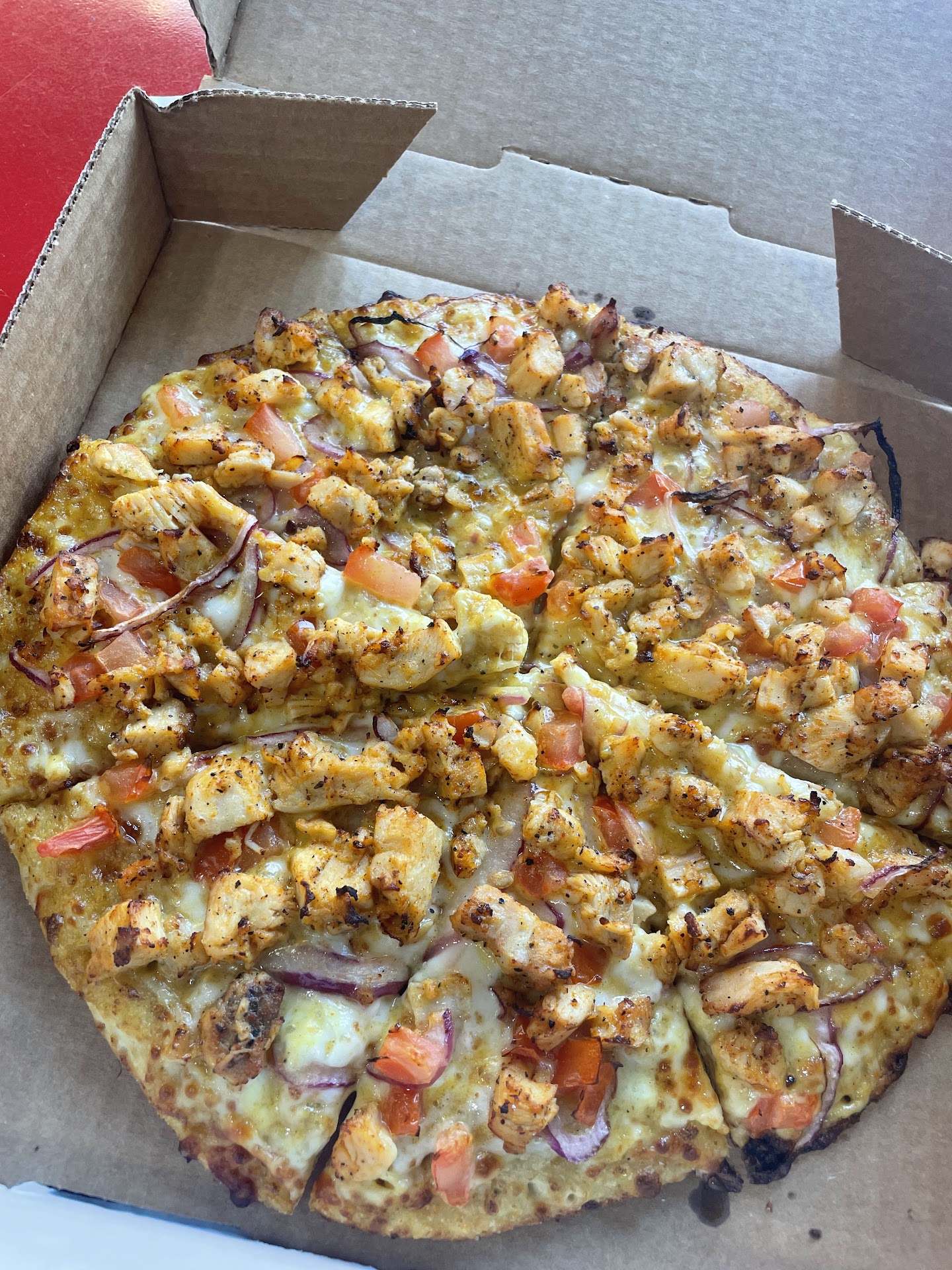 Read moreThe pizza itself is good. It’s not bad pizza. However I got the butter chicken and the pizza just seemed to be a typical chicken pizza I could get at many places. I didn’t taste any of the “butter chicken” dish flavors.