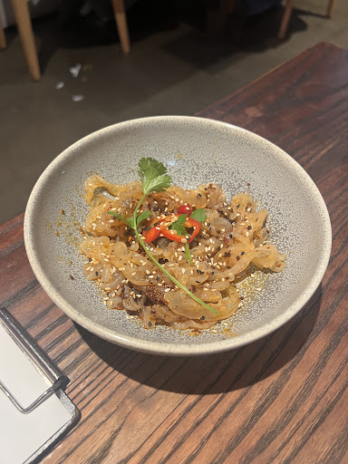 This dish when plated in the restaurant comes with a beautiful hong kong style lace of rose water and flour that makes a pretty lace display over the gyoza. In the take out box, however, the lacing fell apart and has a texture of stale chips.