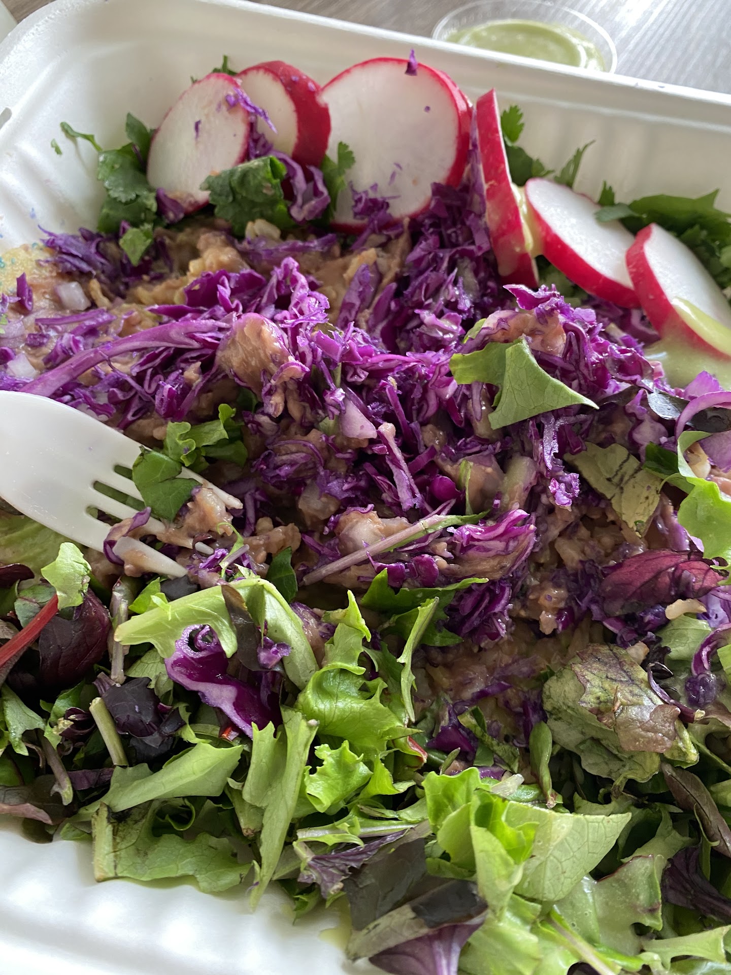 came for the vegan variety, but was disappointed. just go to a real taqueria and order no cheese. maybe it’s just what we ordered but if you’ve had good taquitos/ tacos/ rice/ beans before you’ll probably be disappointed too. feel like the positive reviews were ppl who’ve never had good mexican before. the service was good tho! taquitos were just a long dry piece of crispy alt protein in a fried shell, not even an actual filling with spices. the avocado crema(?) or maybe it was salsa was flavorless and watery so order more spicy and expect it to be low on the spices. the rice was also pretty dry and flavorless, not normal spanish rice, pale like not enough ingredients and spices were used. the black beans were ok, definitely the most flavorful thing we got but still just tasted like watery canned seasoned black beans. the tacos were 90% cabbage and also lacking flavor, though the tortilla was good. even the jamaica was watered down, like idk maybe we got the end of day leftovers but I was sad I spent money in this meal. Be sure to get extra salsa if you do...