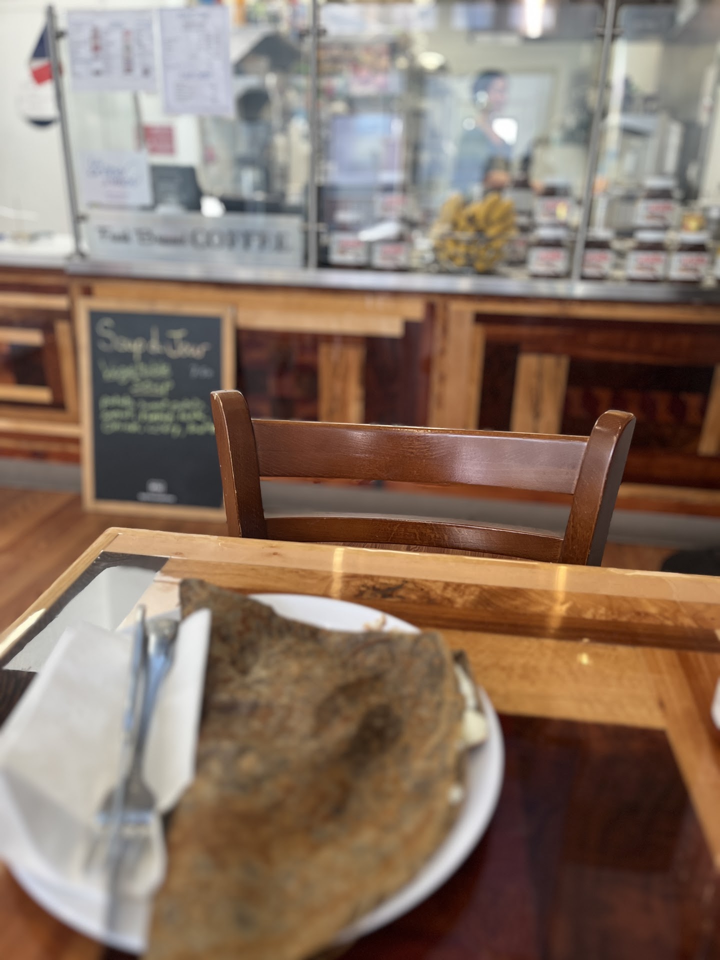 Read morePerfect authentic crepes 💜 I’ve enjoyed Dj and Rebecca’s crepes for years, at different farmer’s markets. Their crepes are a delicious pocket for whatever goodness you ordered inside. Their gluten free option is delicious, with buckwheat flour. Their new brick and mortar restaurant is spacious and you can sense all the care that has gone into it, with tall ceilings and a custom made wood counter. Whatever you order, you must also try any of the crepes with nutella (plain, or with banana or...