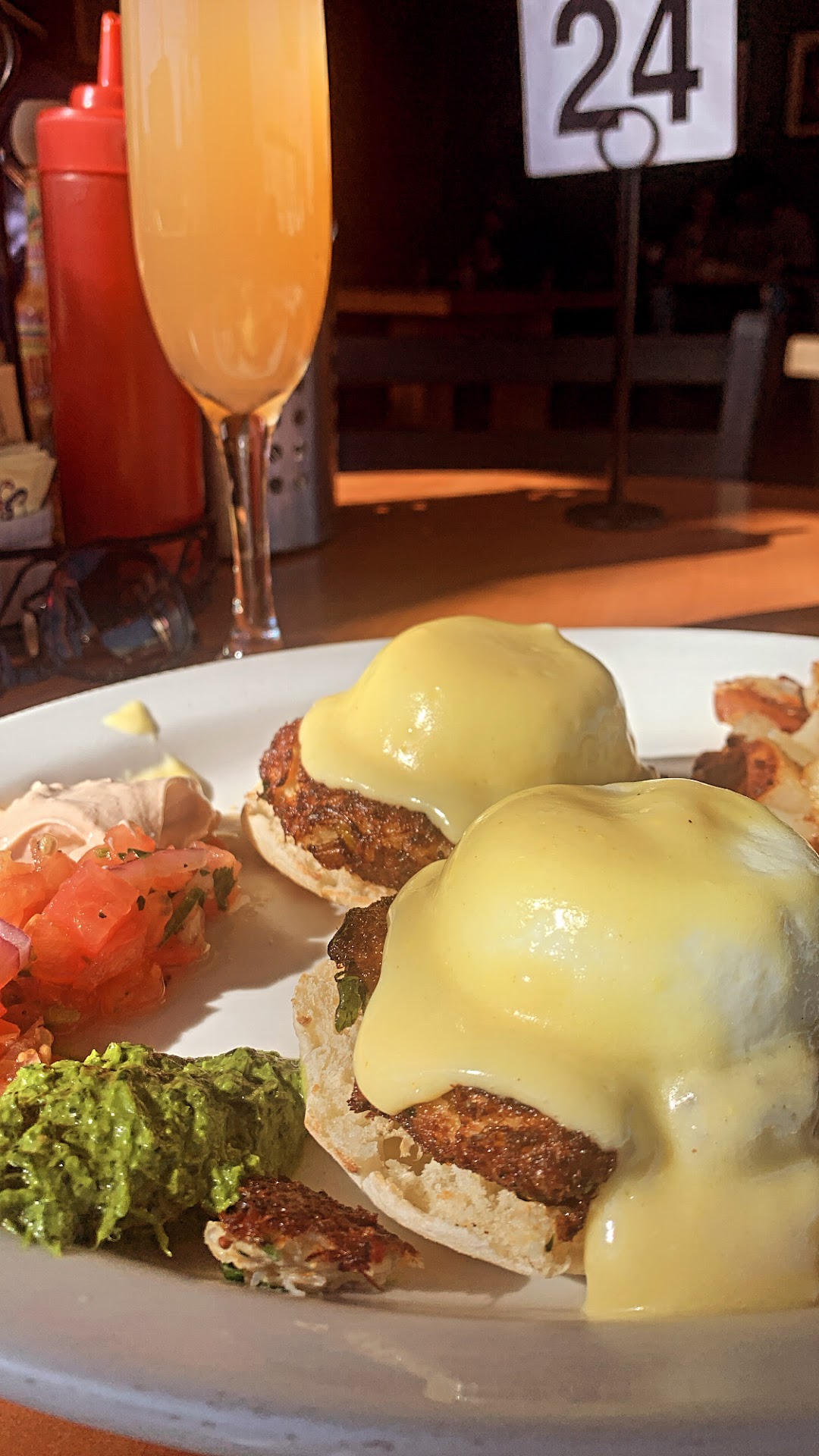 The standout was the Crab Cake Benedict with a twist. Homemade dungeness crab cakes filled with diced bell peppers, celery, shallots, and parsley were a treat. Soft-poached eggs on English muffins, topped with rich hollandaise, paired perfectly. Served with crispy home fries, it was comfort food at its best. And let's not forget the Mimosa I enjoyed alongside – a refreshing addition to the meal.