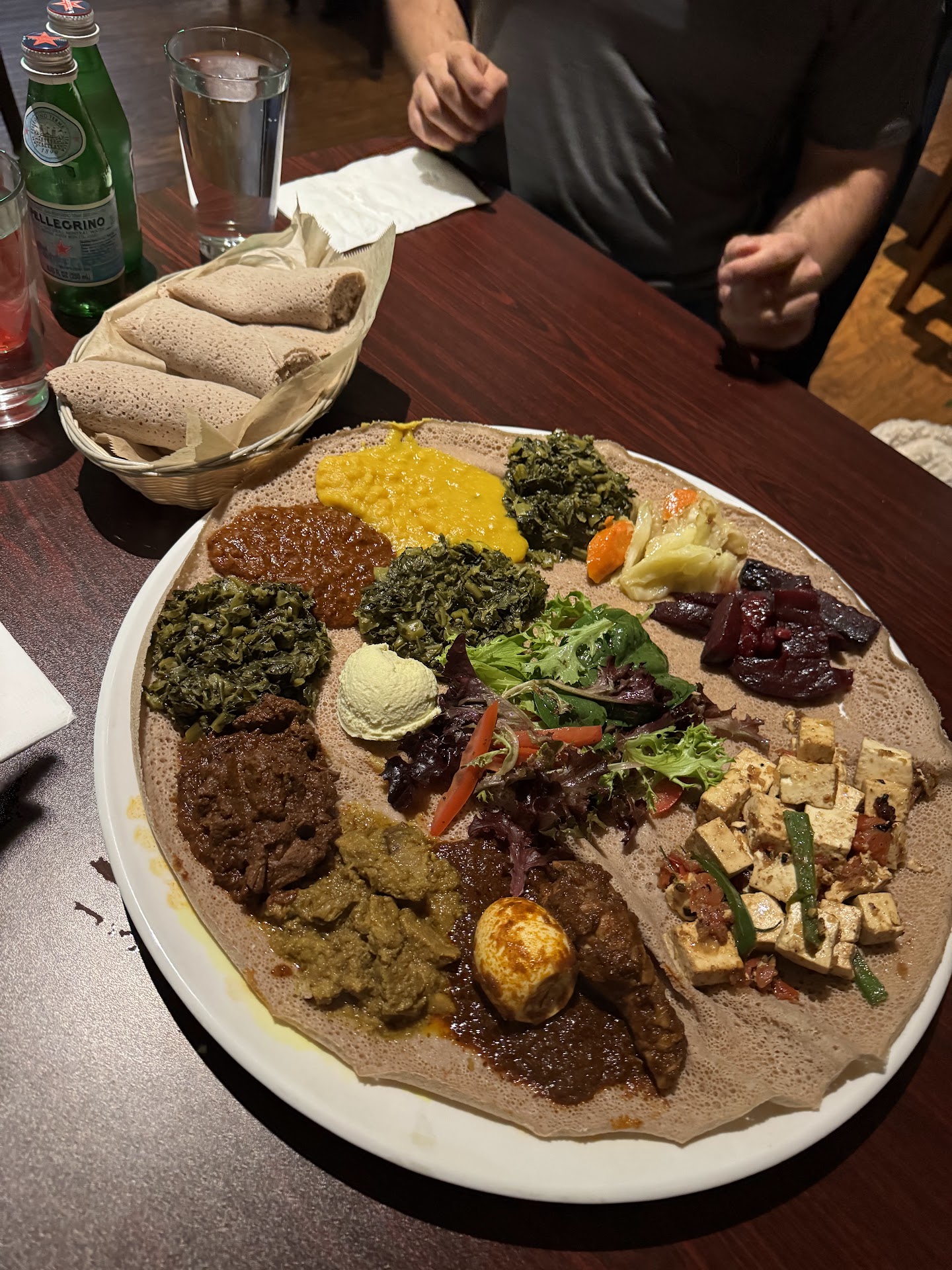 Read moreThis is my 2nd time having Ethiopian food ever - first time i tried Enssaros which is in Oakland (where I live) and I really loved it and could related to it easily because it reminded me of indian food due to the similar veggies and lentils with the injeera which is something in between a roti and a dosa that's served in Indian food. But I really loved it because it's perfect combination of savory, spicyand sourness in the same dish. Lemat was quiet on a Wednesday evening (only 1 table occupied) with only one lady serving and another lady making the coffee in a cozy corner. Between the four of us, we ordered a mix of veg and non veg platter which came in one big round plate - like a thali Indian style ;) and served with injeera. Compared to Enssaro the portions were smaller for almost same price but they had given us two of their pastes with garbanzo beans and can't remember the other one - but they were DELICIOUS! This was enough for us as we weren't super hungry. We also shared 2 baklavas at the end of the meal and the boys also tried the Ethiopian beer which was nice and light. I was surprised to hear they had IPA as well - KUDOS!!! So, overall a very nice experience, a lovely ambience and aromas inside the restaurant. The service was fast and friendly. Will...